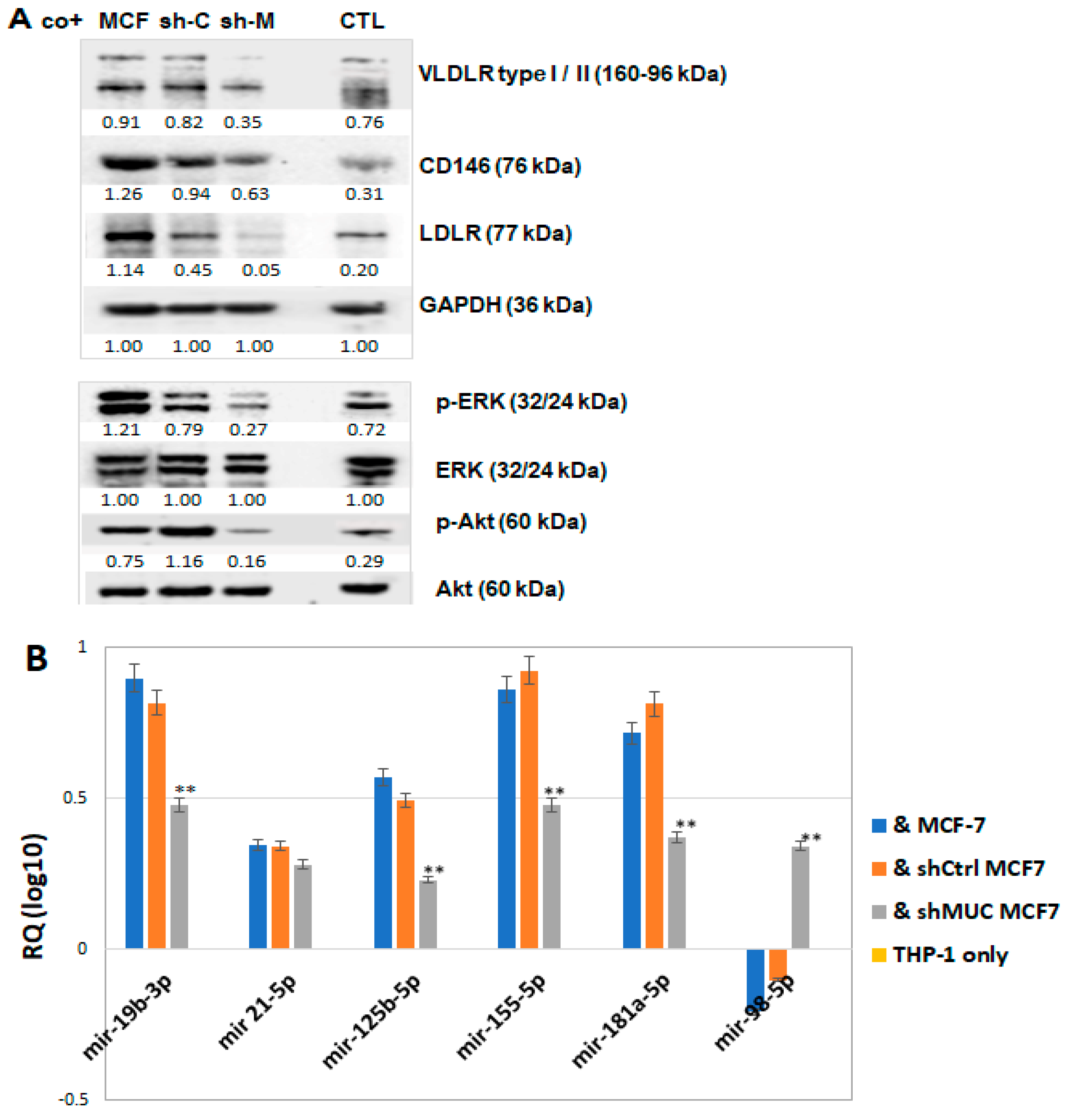2.2.3. TA-MUC1 Modulates miRNAs Relevant to the Regulation of Lipid Retention and Differentiation (Foam Cell Formation) in THP-1 Cells Cocultured with Cancer Cells