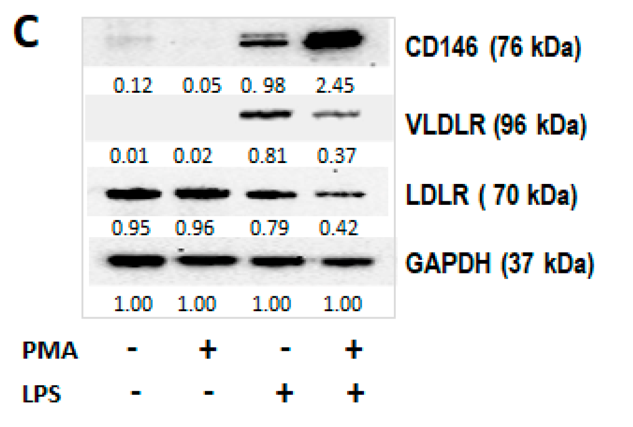- Kosaka, S.; Takahashi, S.; Masamura, K.; Kanehara, H.; Sakai, J.; Tohda, G.; Okada, E.; Oida, K.; Iwasaki, T.; Hattori, H.; et al. Evidence of macrophage foam cell formation by very low-density lipoprotein receptor: Interferon-gamma inhibition of very low-density lipoprotein receptor expression and foam cell formation in macrophages. Circulation 2001, 27, 1142–1147. [Google Scholar] [CrossRef]
