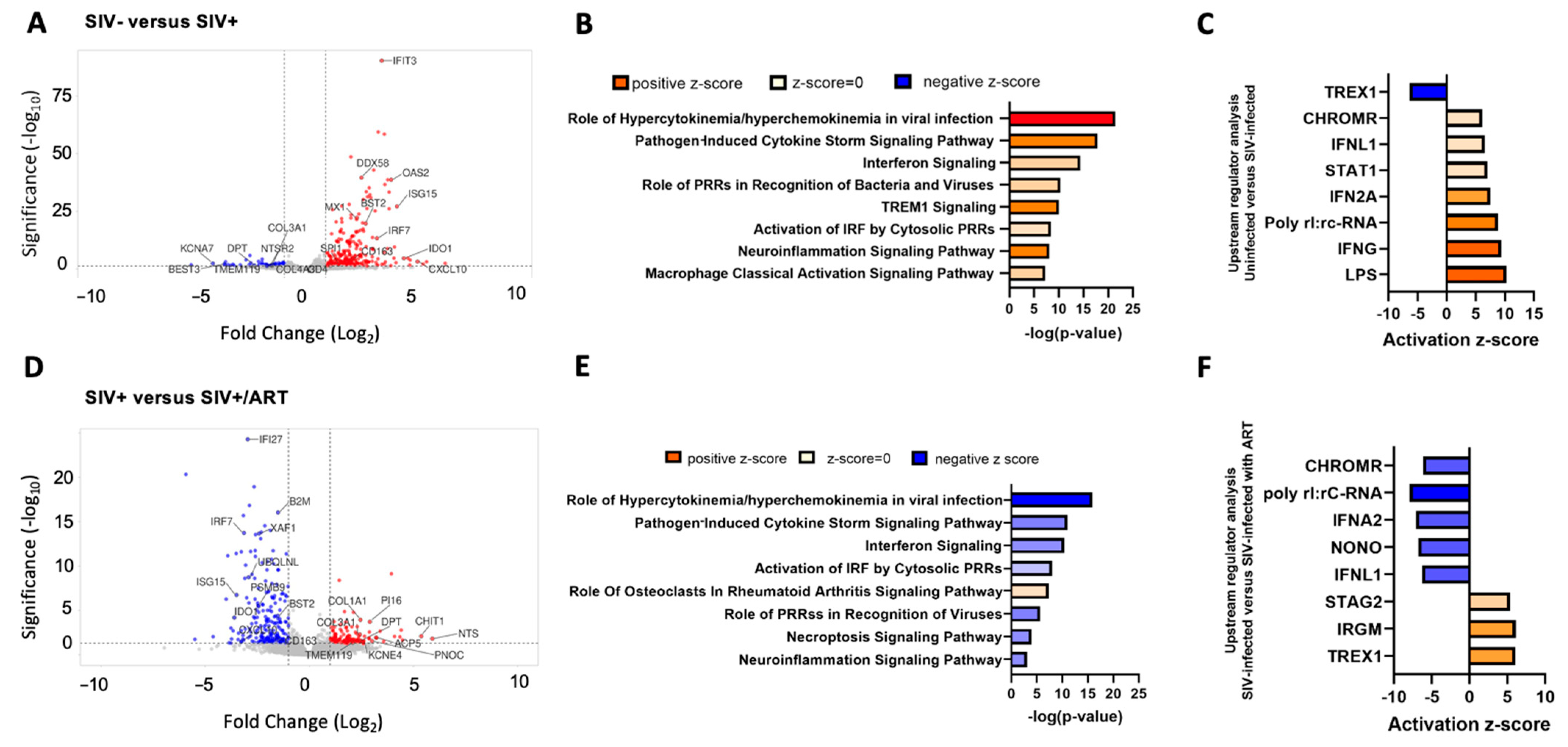 2.1. IFNγ and LPS Pathways Are Upregulated in the DRG with SIV Infection and Downregulated with ART