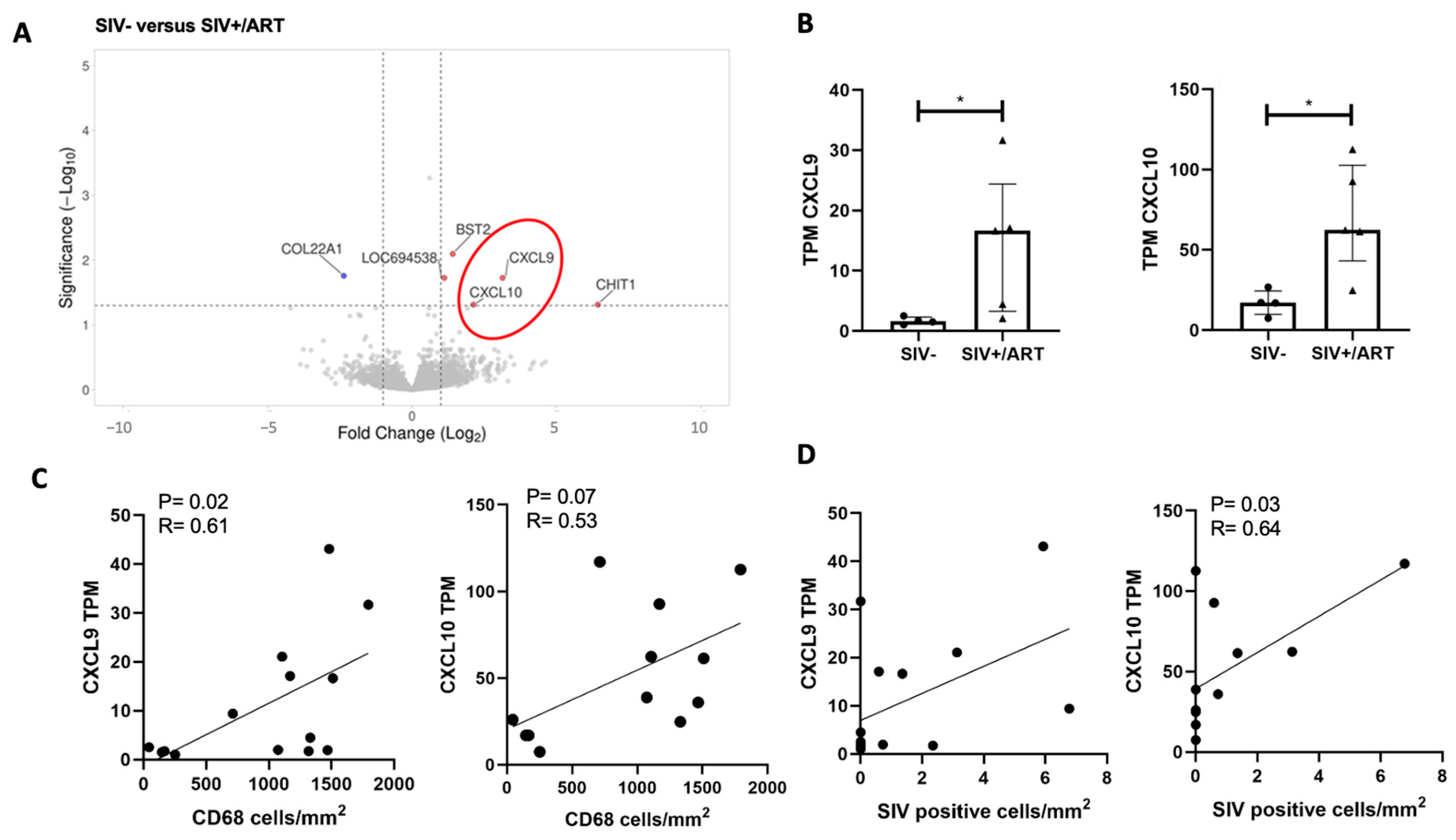 2.2. CXCL9 and CXCL10, Downstream Mediators of IFNγ and LPS Signaling, Are Upregulated in the DRGs of SIV+/ART Macaques