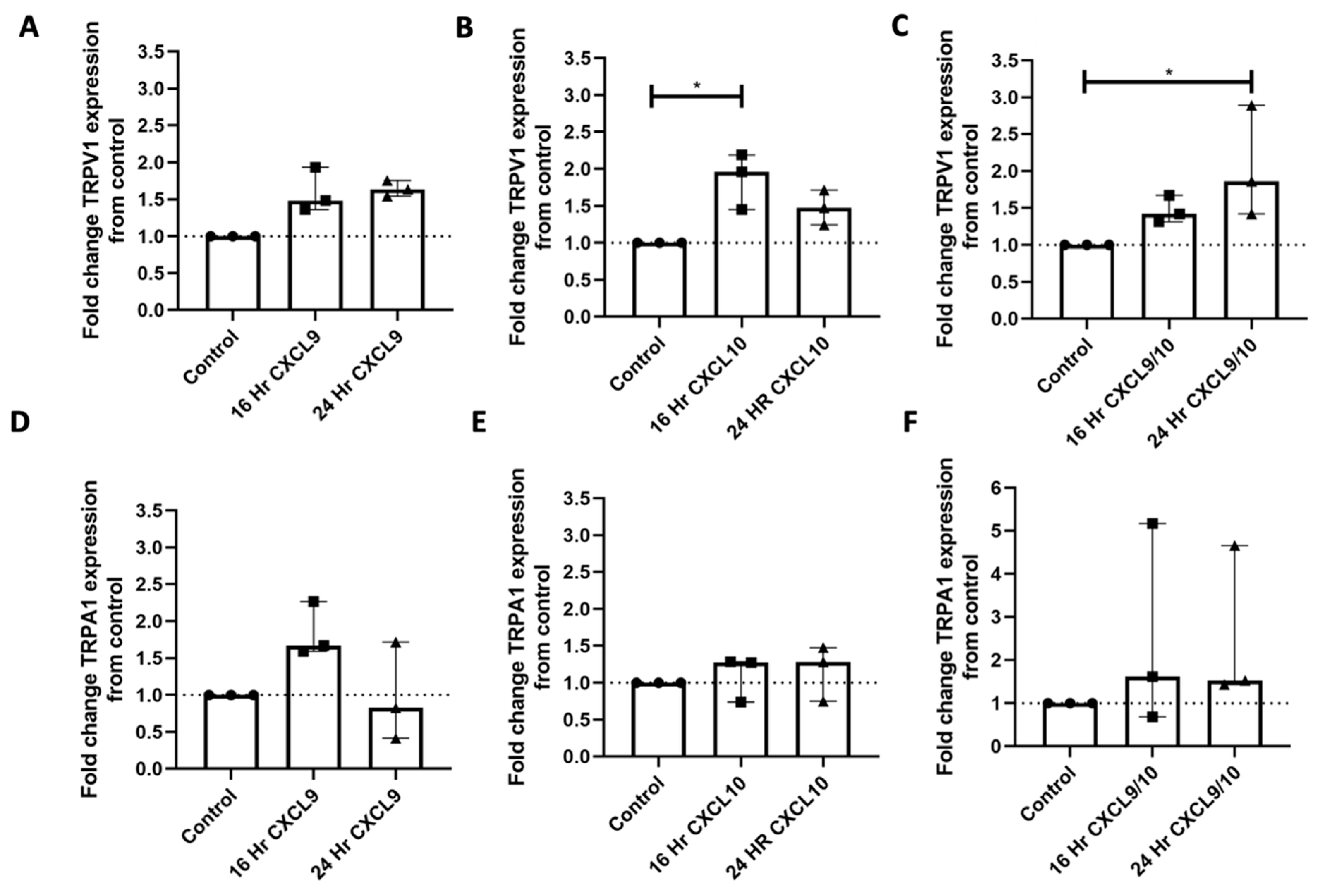 2.3. CXCL9 and CXCL10 Induce TRPV1 and TRPA1 Expression in iPSC-PSNs