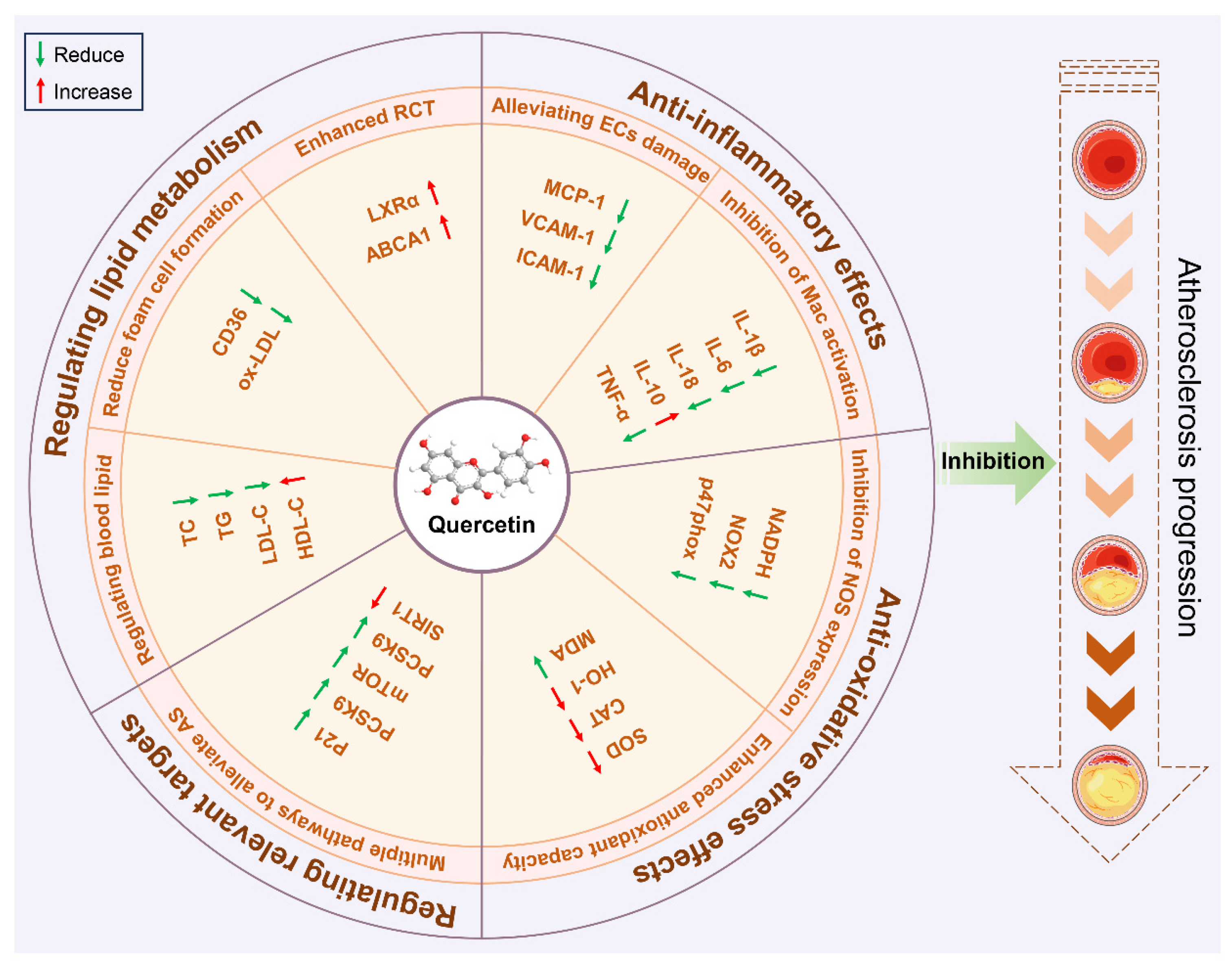 - Li, S.S.; Cao, H.; Shen, D.Z.; Jia, Q.L.; Chen, C.; Xing, S.L. Quercetin protects against ox-LDL-induced injury via regulation of ABCAl, LXR-α and PCSK9 in RAW264.7 macrophages. Mol. Med. Rep. 2018, 18, 799–806. [Google Scholar] [CrossRef]