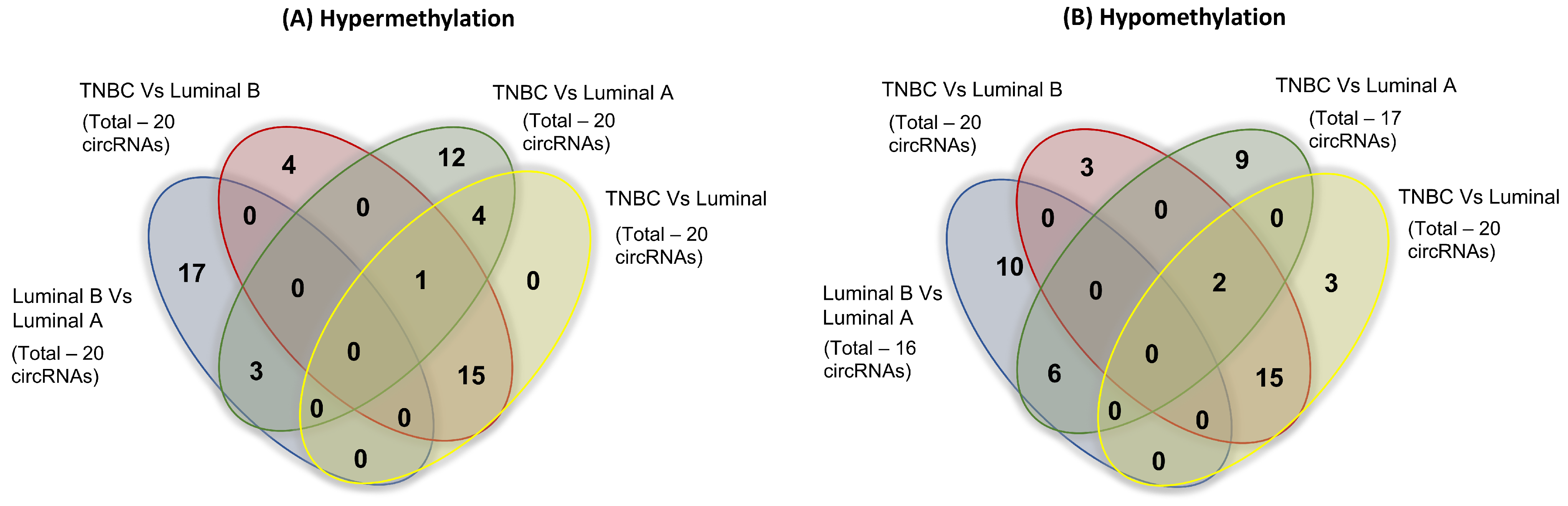 - Foruzandeh, Z.; Dorabadi, D.G.; Sadeghi, F.; Zeinali-Sehrig, F.; Zaefizadeh, M.; Rahmati, Y.; Alivand, M.R. Circular RNAs as novel biomarkers in triple-negative breast cancer: A systematic review. Mol. Biol. Rep. 2022, 49, 9825–9840. [Google Scholar] [CrossRef]