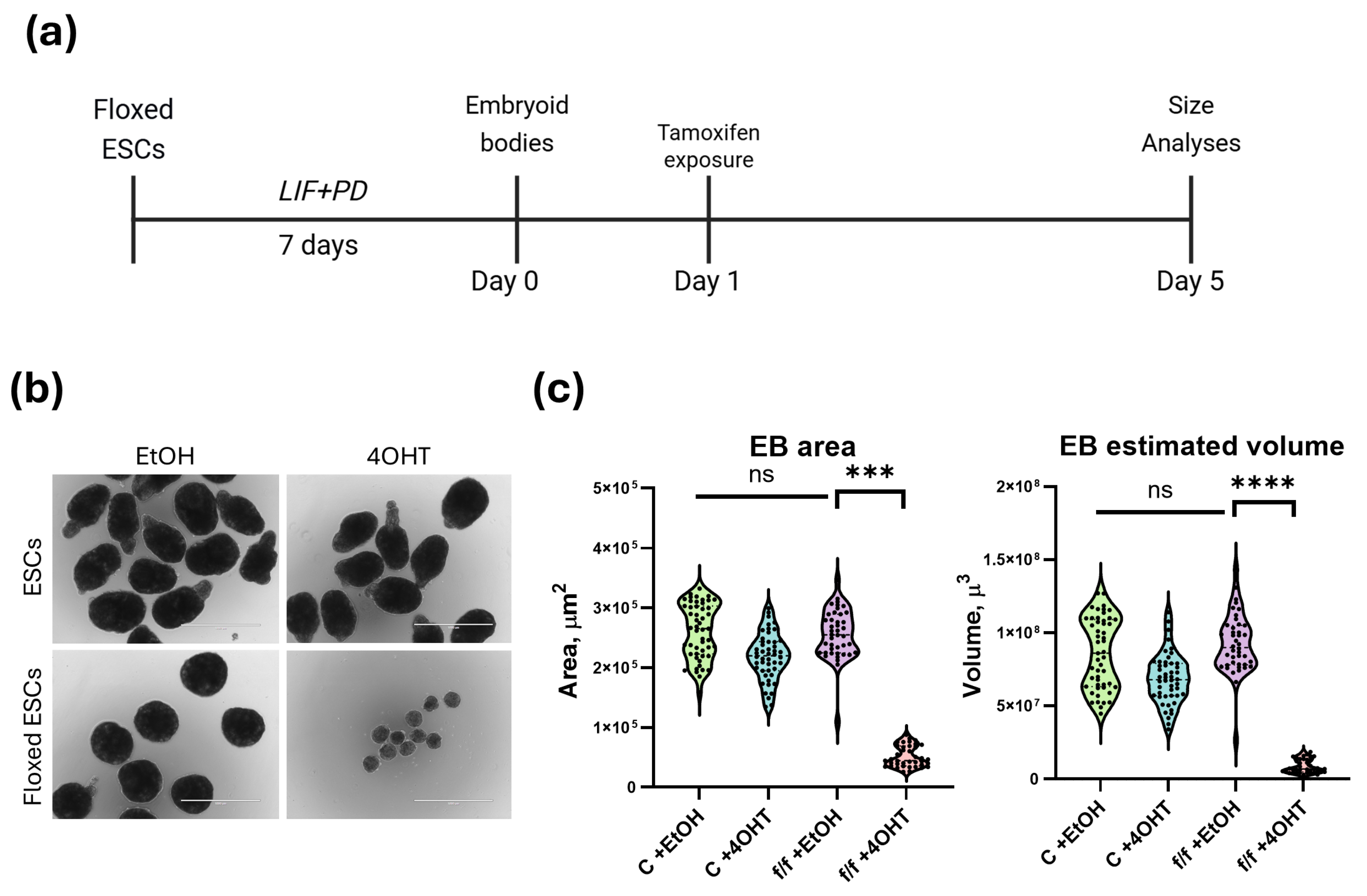 2.2. Conditional Loss of Oct4 Impairs EB Growth