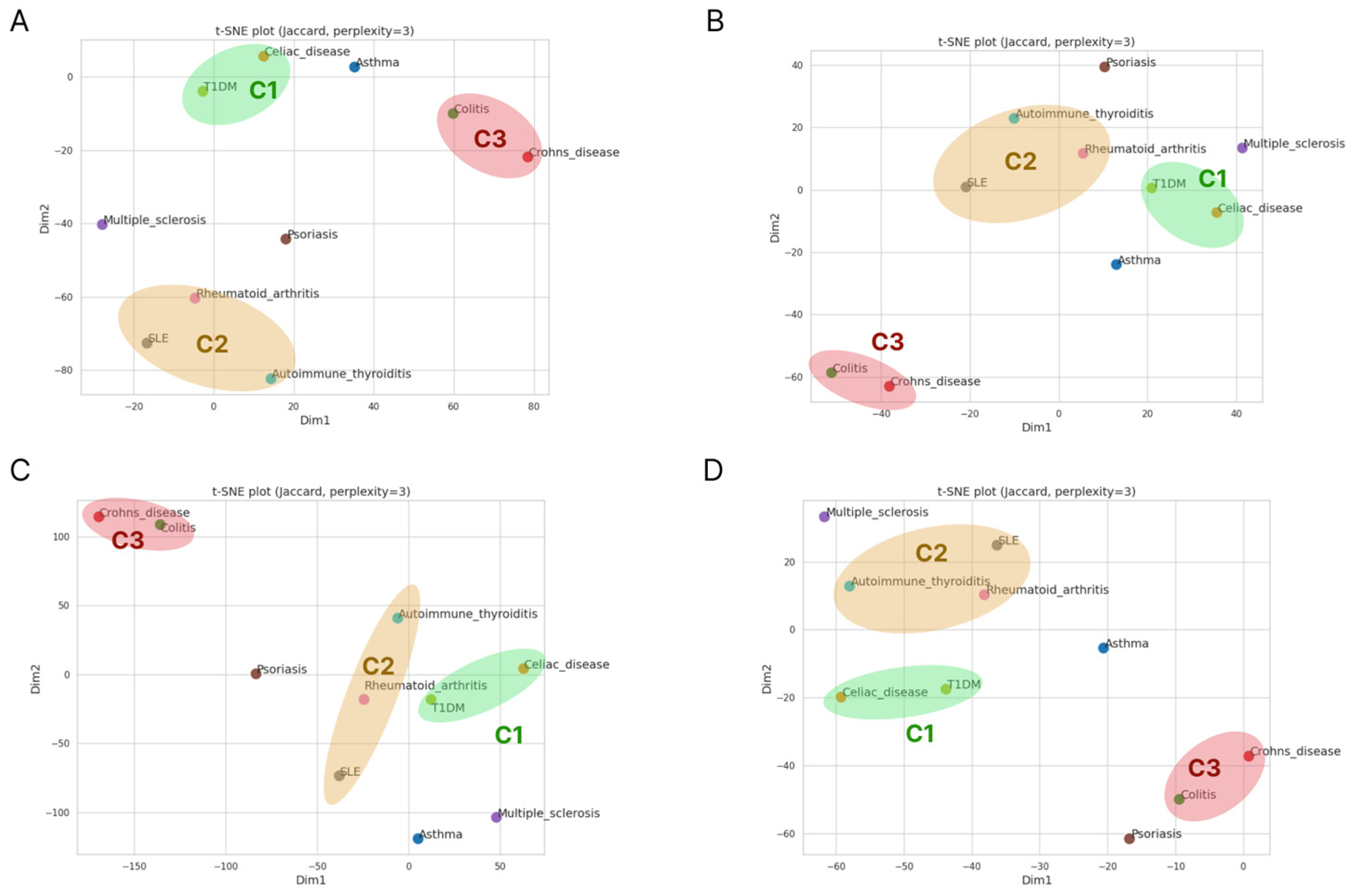 | C2—RA, SLE, AIT | 9 | 12 | 23 | 8 | 6 |
