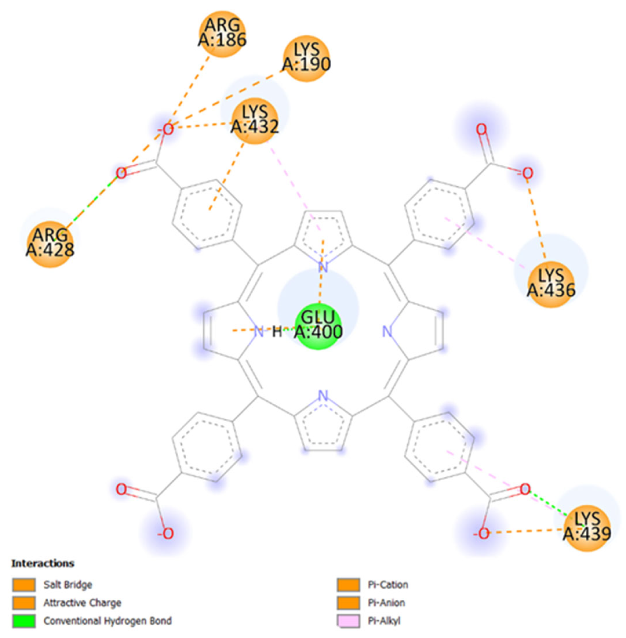 - Udrea, A.-M.; Dinache, A.; Staicu, A.; Avram, S. Target Prediction of 5,10,15,20-Tetrakis(4′-Sulfonatophenyl)-Porphyrin Using Molecular Docking. Pharmaceutics 2022, 14, 2390. [Google Scholar] [CrossRef] [PubMed]