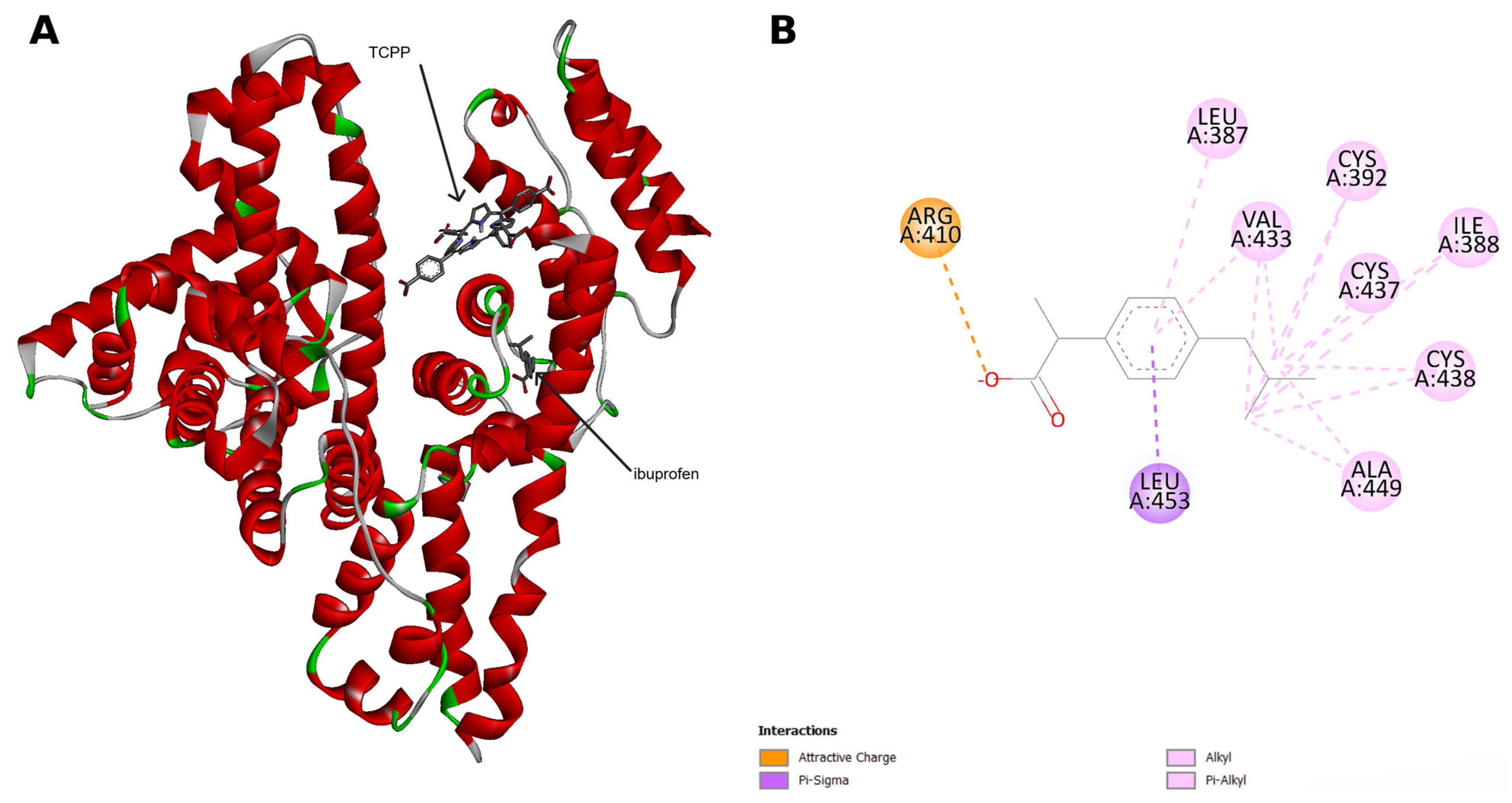 - Evoli, S.; Mobley, D.L.; Guzzi, R.; Rizzuti, B. Multiple Binding Modes of Ibuprofen in Human Serum Albumin Identified by Absolute Binding Free Energy Calculations. Phys. Chem. Chem. Phys. 2016, 18, 32358–32368. [Google Scholar] [CrossRef]