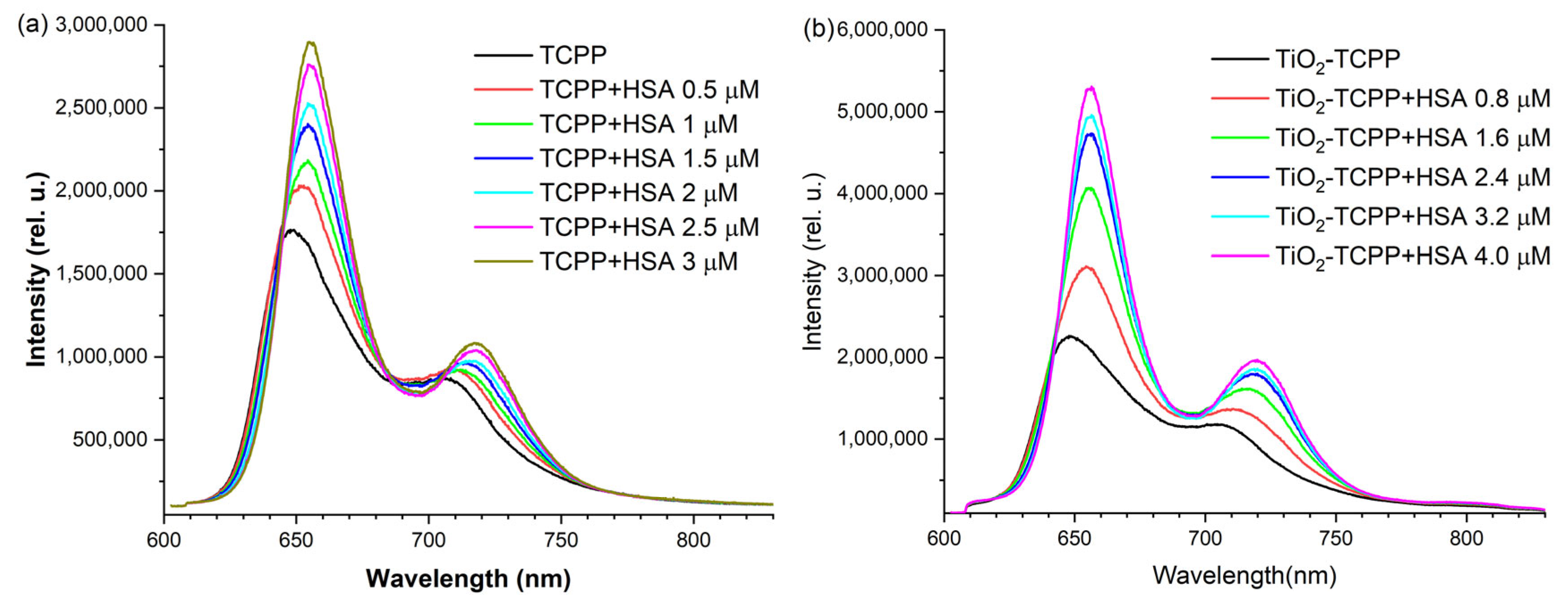 - Pavanelli, A.L.S.; Máximo, L.N.C.; Da Silva, R.S.; Borissevitch, I.E. Effect of Serum Albumin on Porphyrin-Quantum Dot Complex Formation, Characteristics and Spectroscopic Analysis. Nanomaterials 2021, 11, 1674. [Google Scholar] [CrossRef]