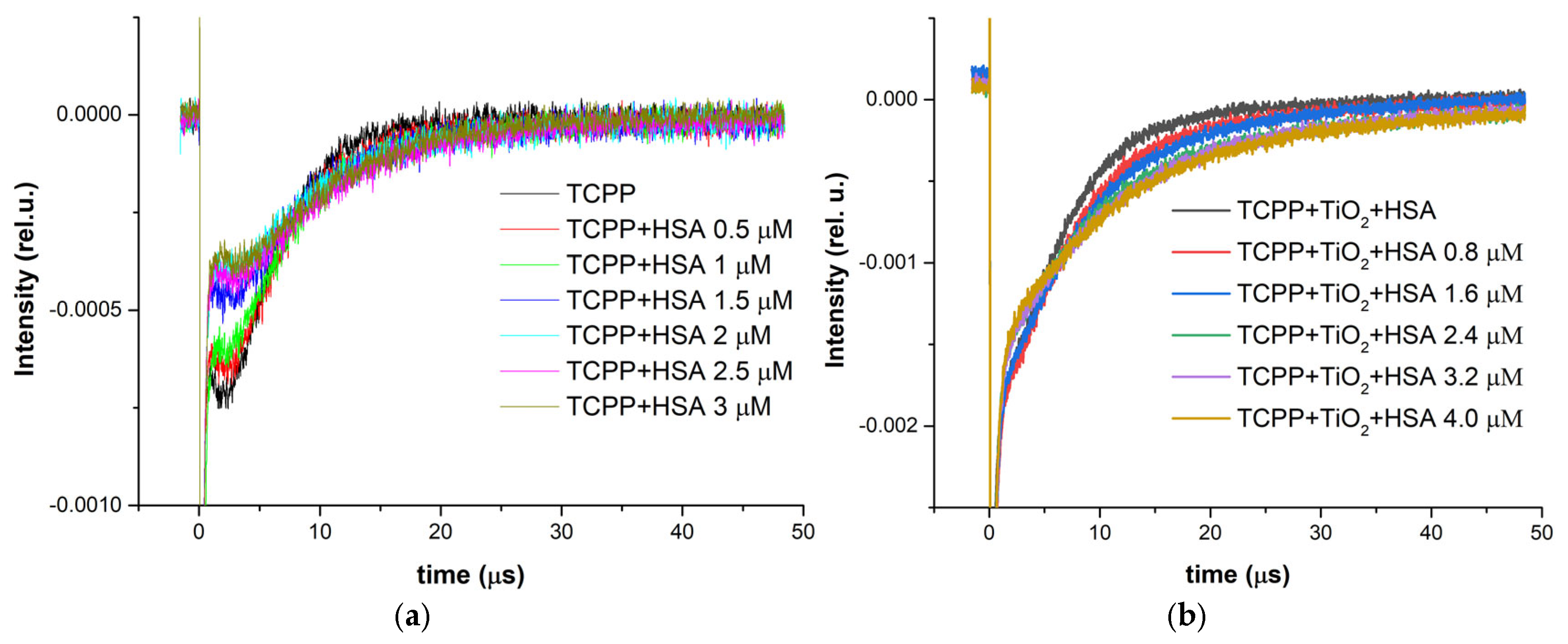 - Sun, W.; Du, Y.; Chen, J.; Kou, J.; Yu, B. Interaction between Titanium Dioxide Nanoparticles and Human Serum Albumin Revealed by Fluorescence Spectroscopy in the Absence of Photoactivation. J. Lumin. 2009, 129, 778–783. [Google Scholar] [CrossRef]