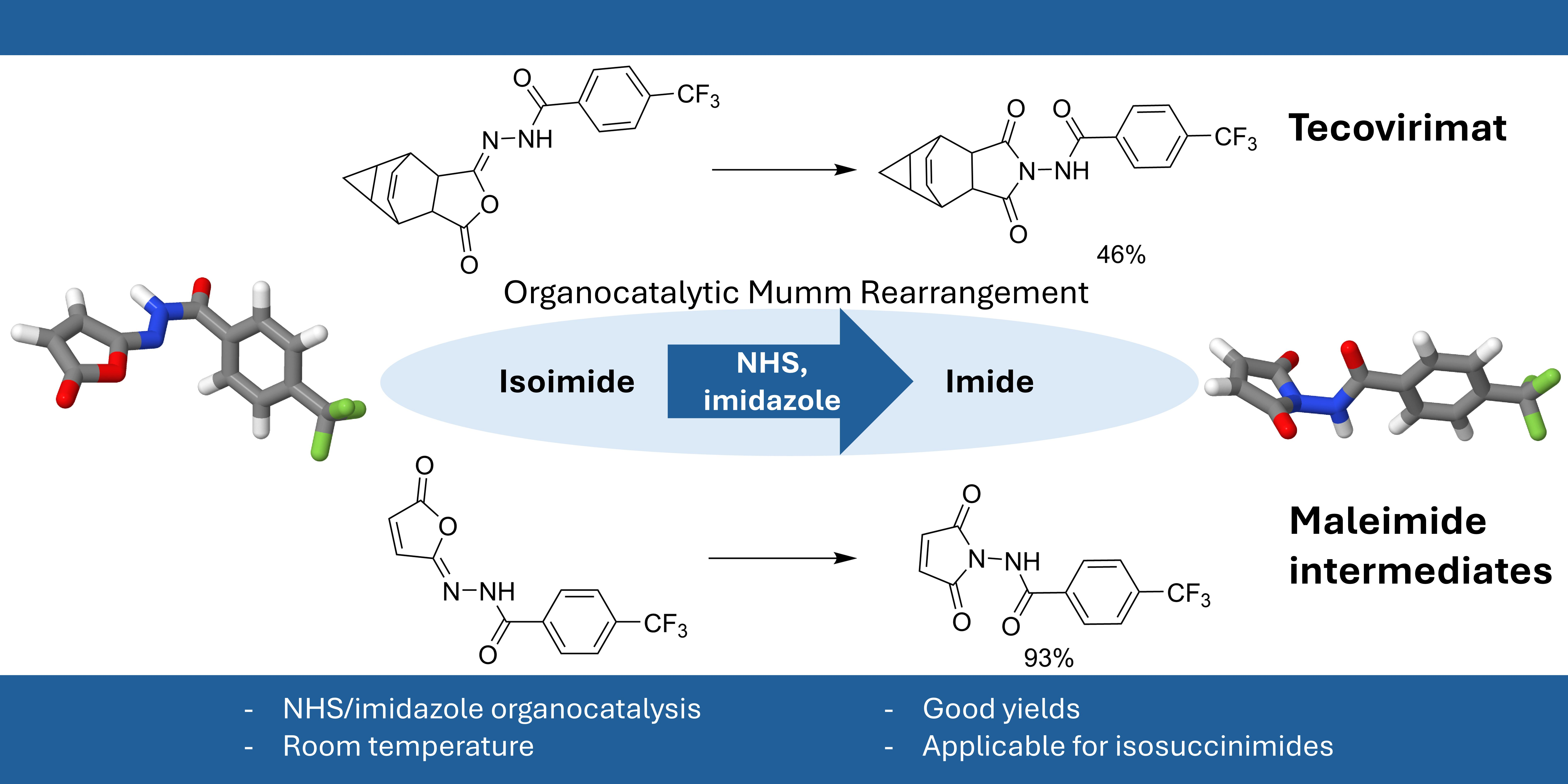 Synthesis of Antiviral Drug Tecovirimat and Its Key Maleimide Intermediates Using Organocatalytic Mumm Rearrangement at Ambient Conditions