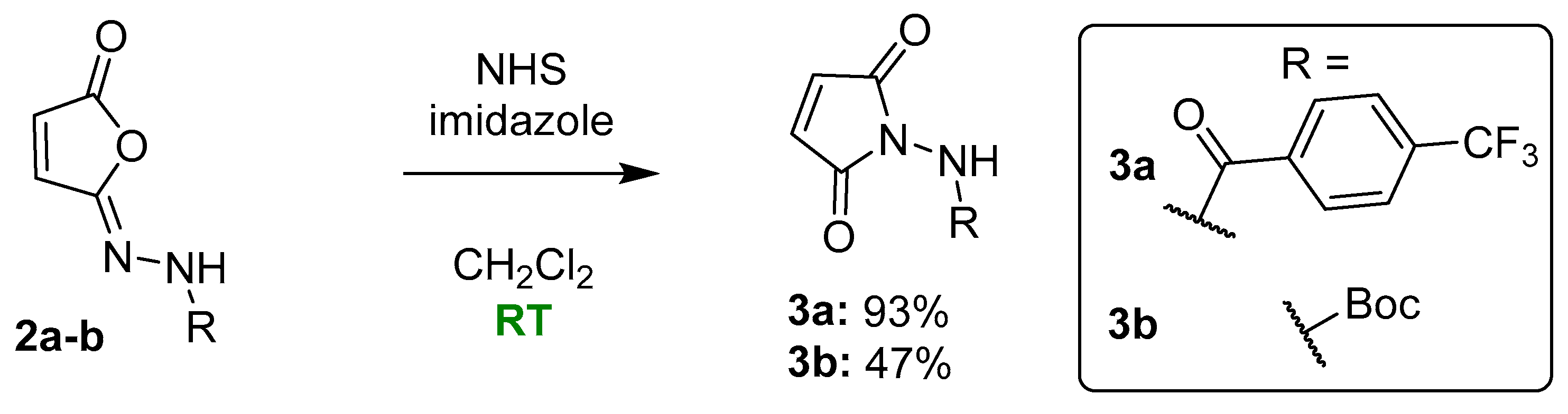 2.2. Optimization of Isomaleimide 2a and 2b Synthesis