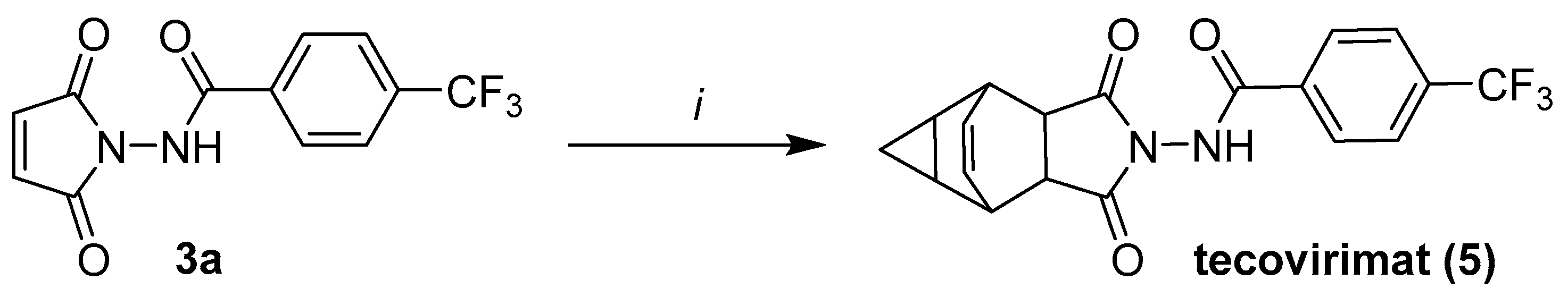 3.6.4. Synthesis of Tecovirimat (5) from Maleimide 3a