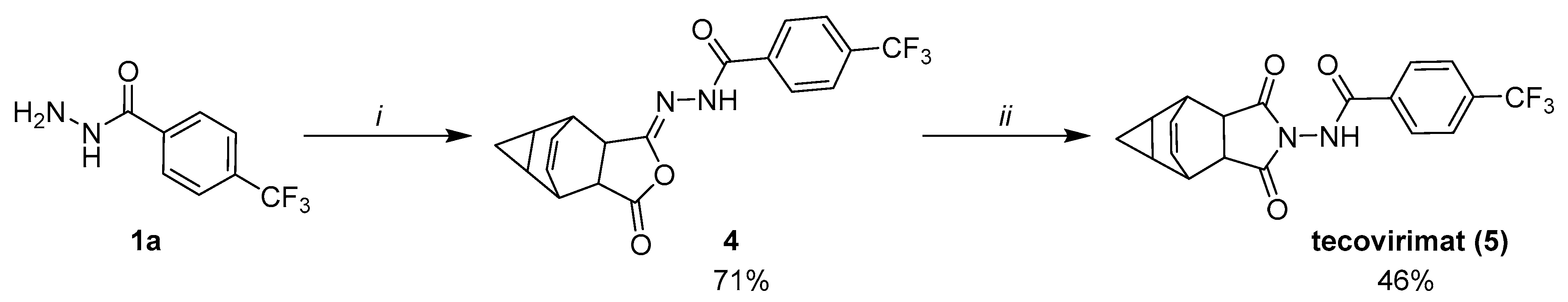 3.7.15. (Z)-N′-(3-oxo-3,3a,4,4a,5,5a,6,6a-octahydro-1H-4,6-ethenocyclopropa[f]isobenzofuran-1-ylidene)-4-(trifluoromethyl)benzohydrazide (Tecovirimat, 5)