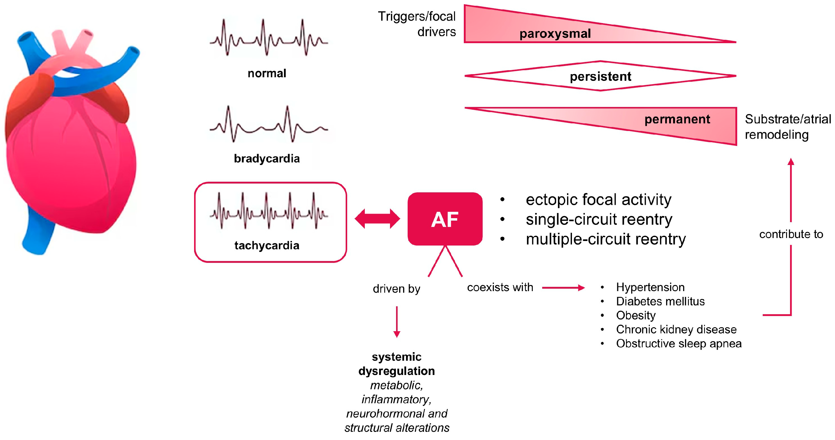 - Bidaoui, G.; Assaf, A.; Marrouche, N. Atrial Fibrillation in Heart Failure: Novel Insights, Challenges, and Treatment Opportunities. Curr. Heart Fail. Rep. 2025, 22, 3. [Google Scholar] [CrossRef]