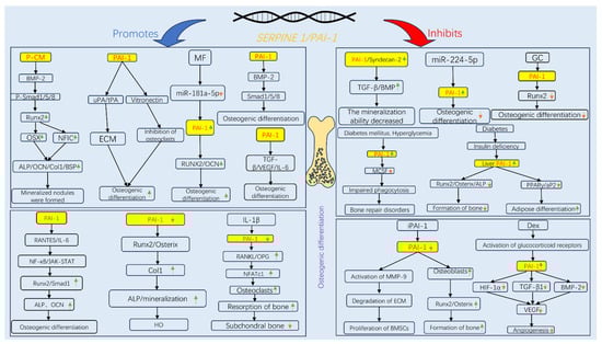 PAI-1 promotes/inhibits osteogenesis.