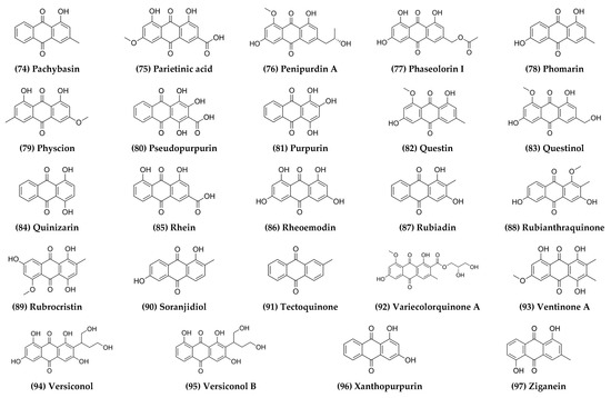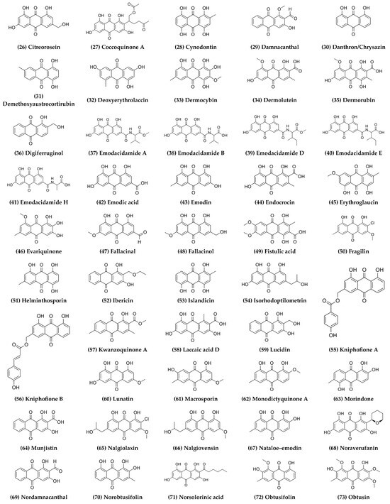 Graphical representation of the 9,10–anthraquinones considered in this study.