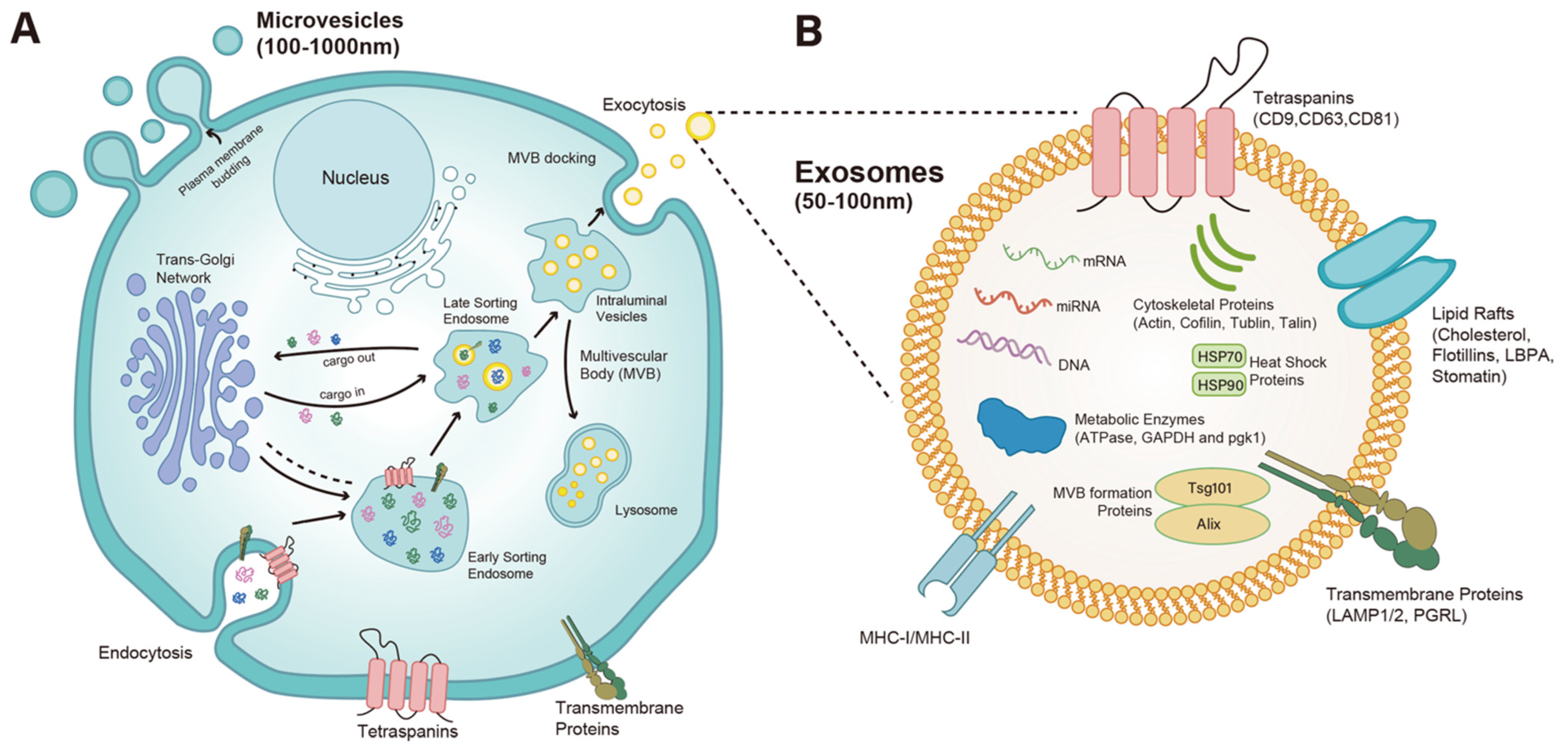 - Kumar, M.A.; Baba, S.K.; Sadida, H.Q.; Marzooqi, S.A.; Jerobin, J.; Altemani, F.H.; Algehainy, N.; Alanazi, M.A.; Abou-Samra, A.B.; Kumar, R.; et al. Extracellular vesicles as tools and targets in therapy for diseases. Signal Transduct. Target. Ther. 2024, 9, 27. [Google Scholar] [CrossRef]