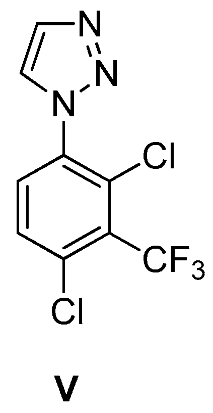 3.2.5. Synthesis of Aromatic 1,2,3-Triazole Amines Hydrochloride [1E–6E, 1E(CF3) and 2E(CF3)]