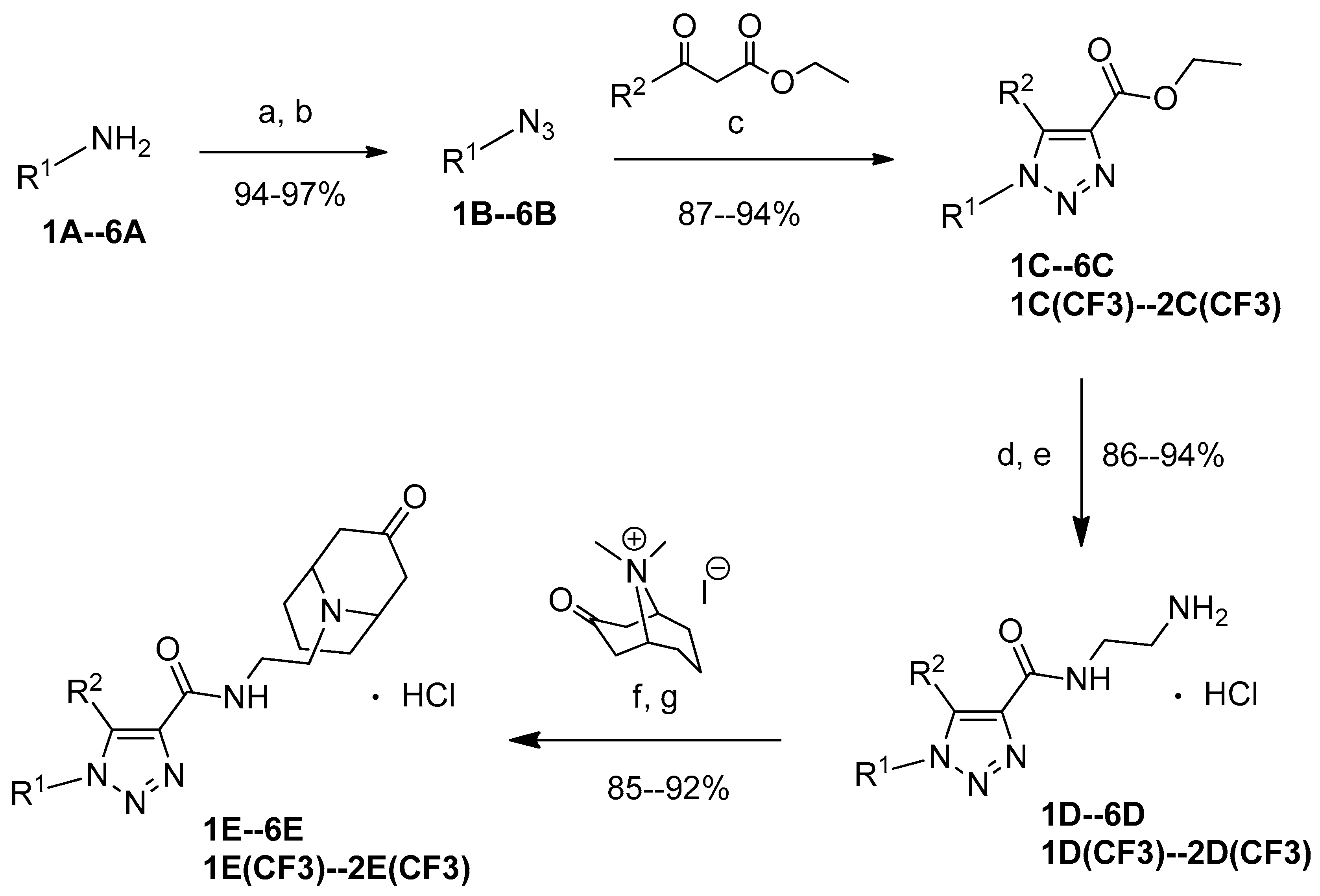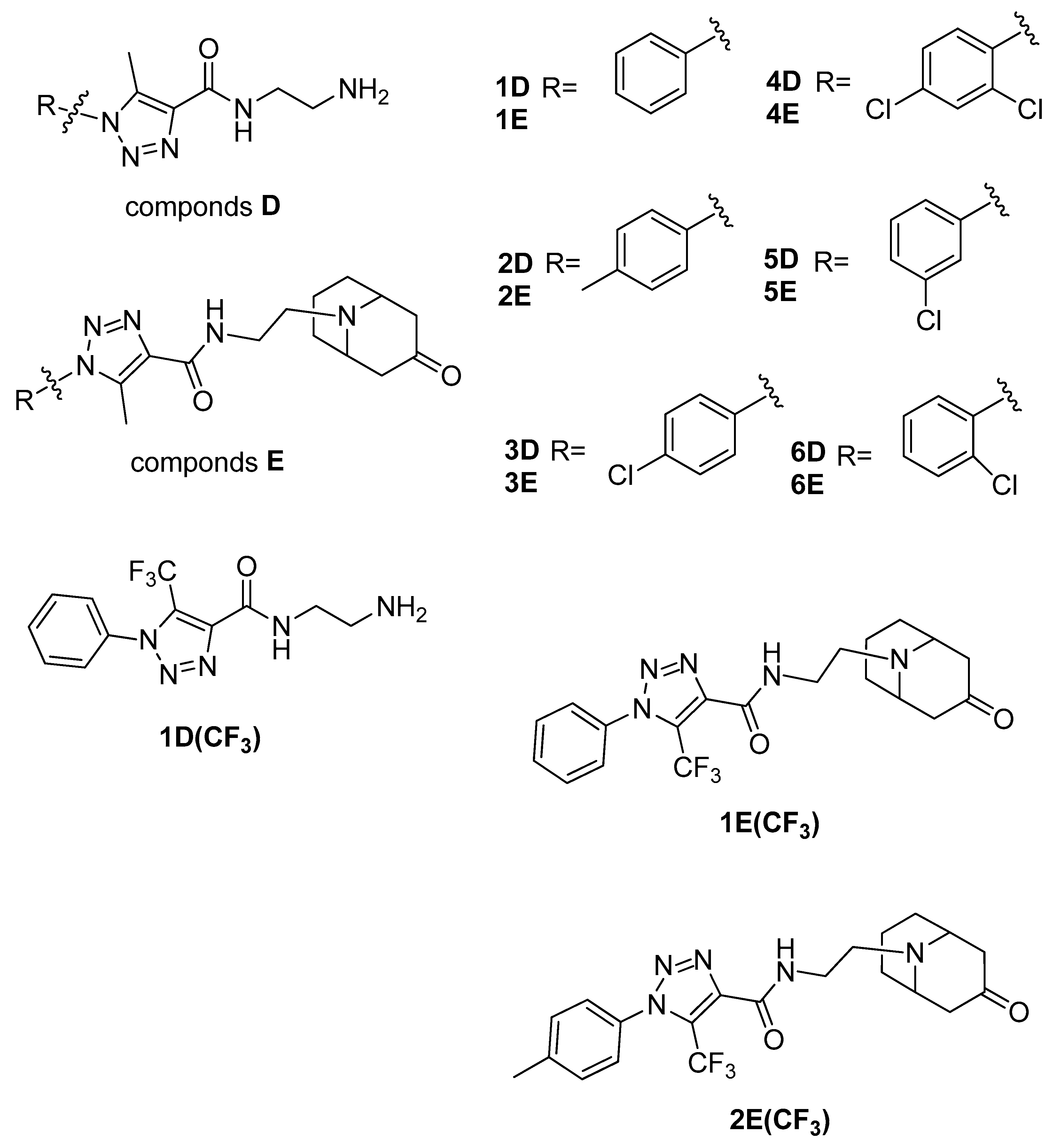 3.2.4. Synthesis of 1,2,3-Triazole Amides Hydrochlorides [1D–6D, 1D(CF3) and 2D(CF3)]