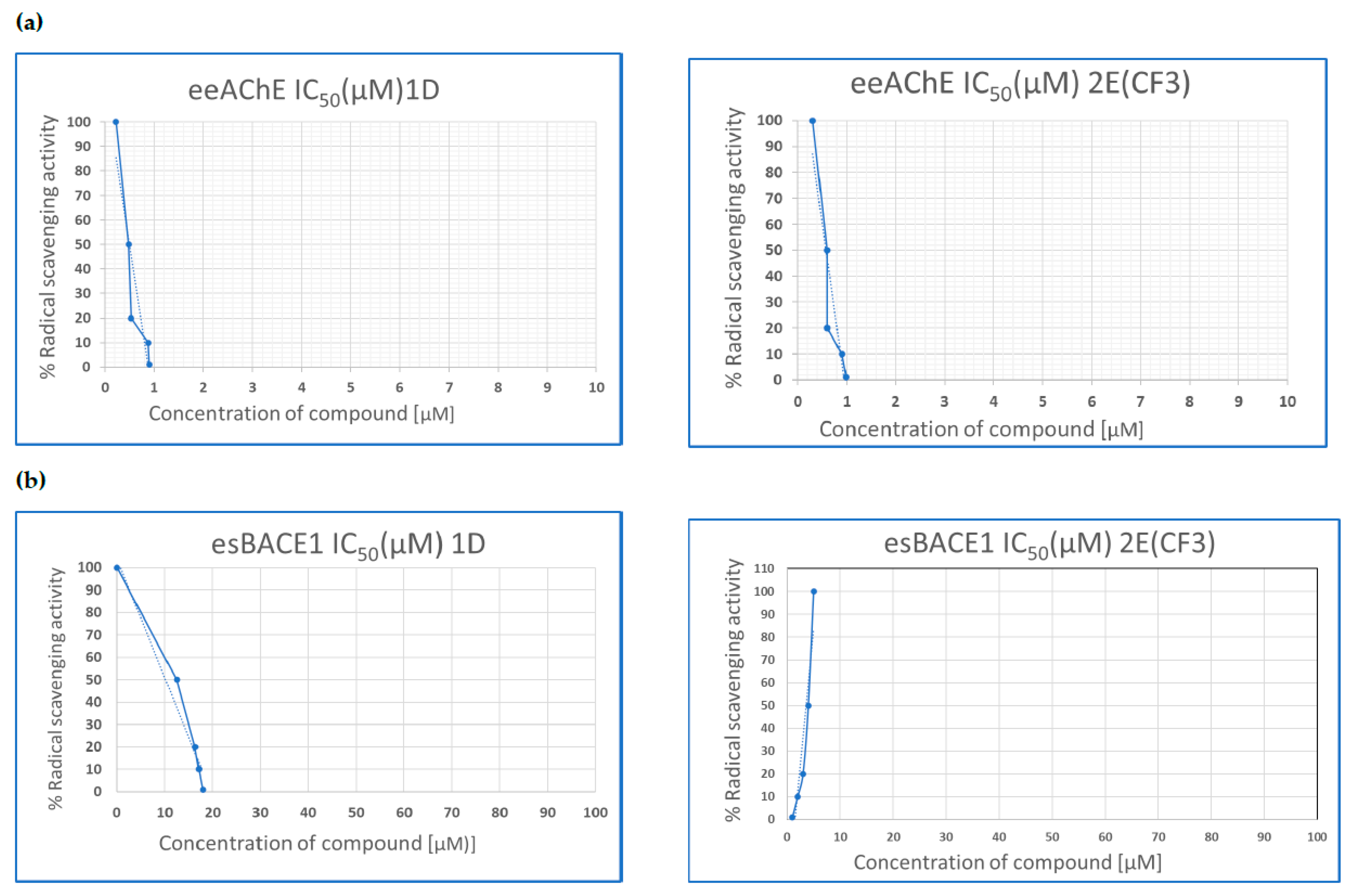 2.2. In Vitro AChE and BACE1 Inhibitory Activity