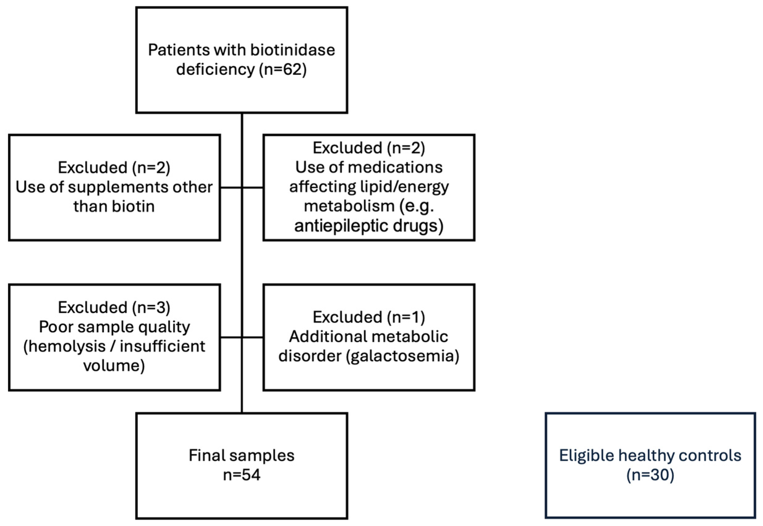 - Saleem, H.; Simpson, B. Biotinidase Deficiency. In StatPearls [Internet]; StatPearls Publishing: Treasure Island, FL, USA, 2025. Available online: https://www.ncbi.nlm.nih.gov/books/NBK560607/ (accessed on 25 December 2025).