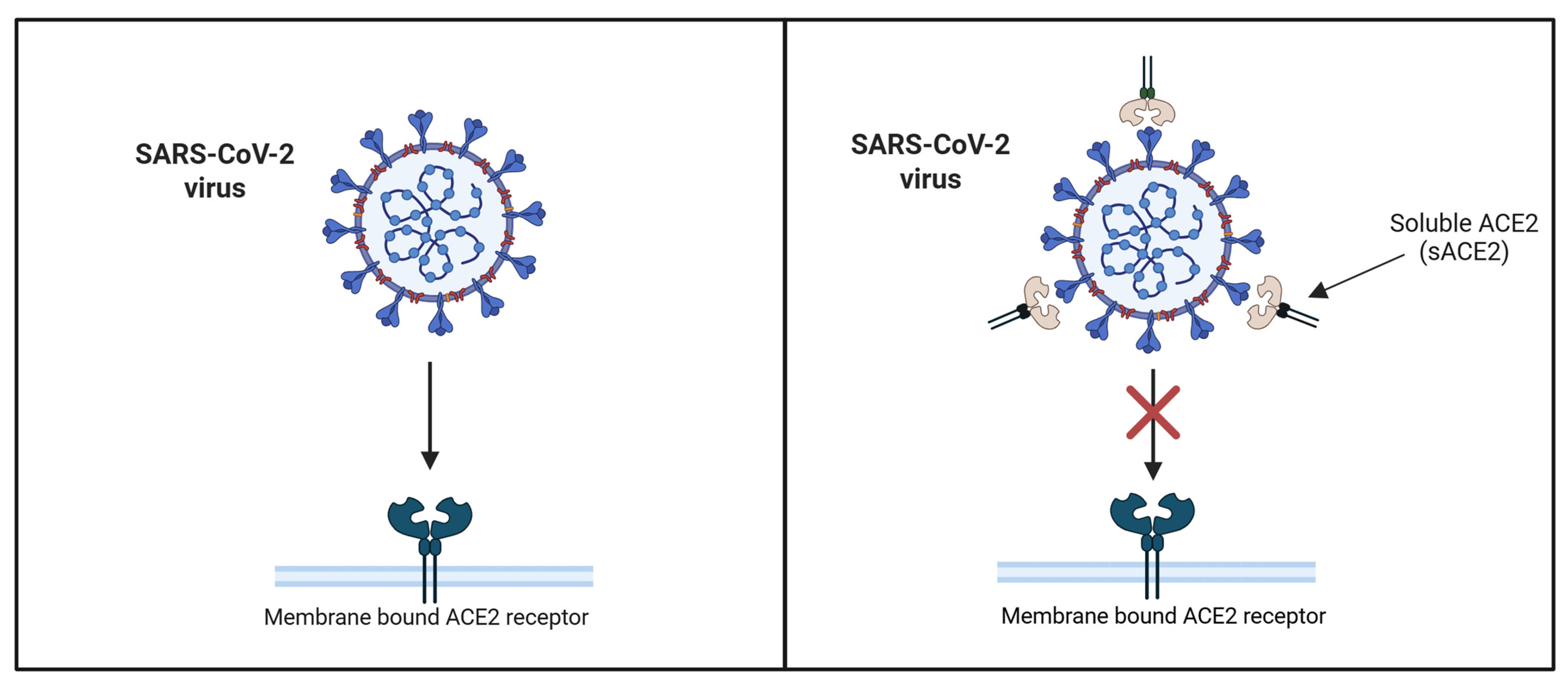 - Zoufaly, A.; Poglitsch, M.; Aberle, J.H.; Hoepler, W.; Seitz, T.; Traugott, M.; Grieb, A.; Pawelka, E.; Laferl, H.; Wenisch, C.; et al. Human recombinant soluble ACE2 in severe COVID-19. Lancet Respir. Med. 2020, 8, 1154–1158, Correction in Lancet Respir. Med. 2020, 8, 1154–1158. [Google Scholar] [CrossRef]