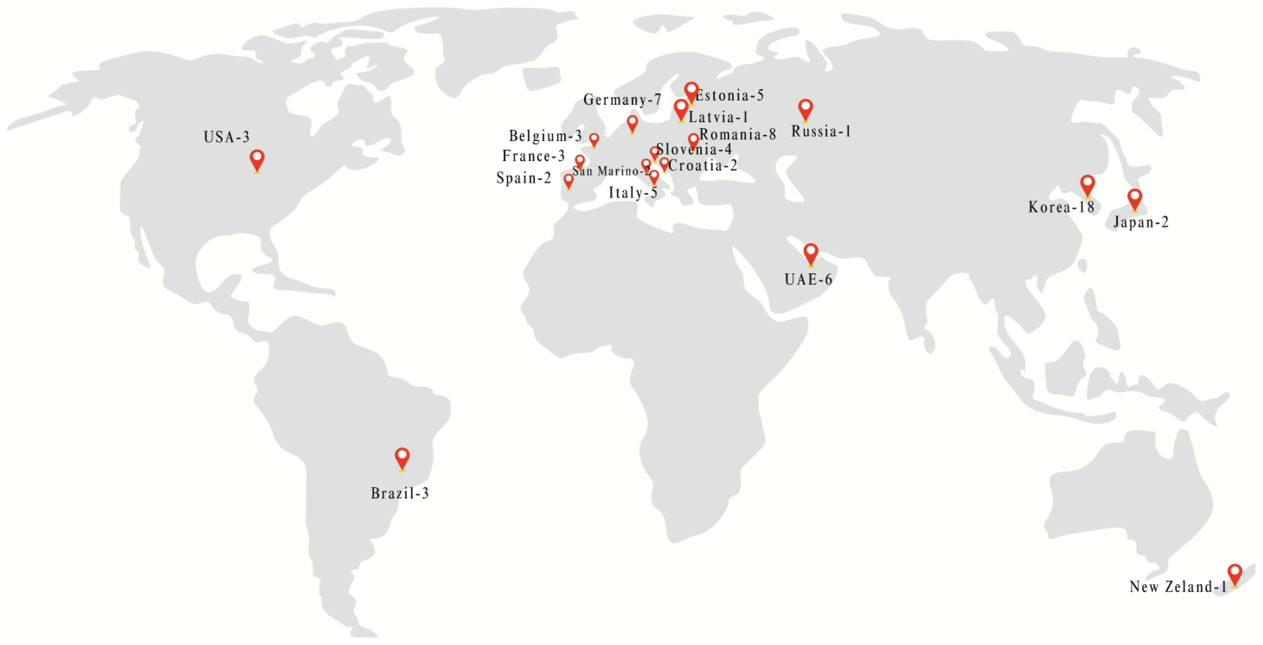 | Korea | Water | Drop | 99 | 8.6 ± 0.5 | 41.1 ± 4.3 |