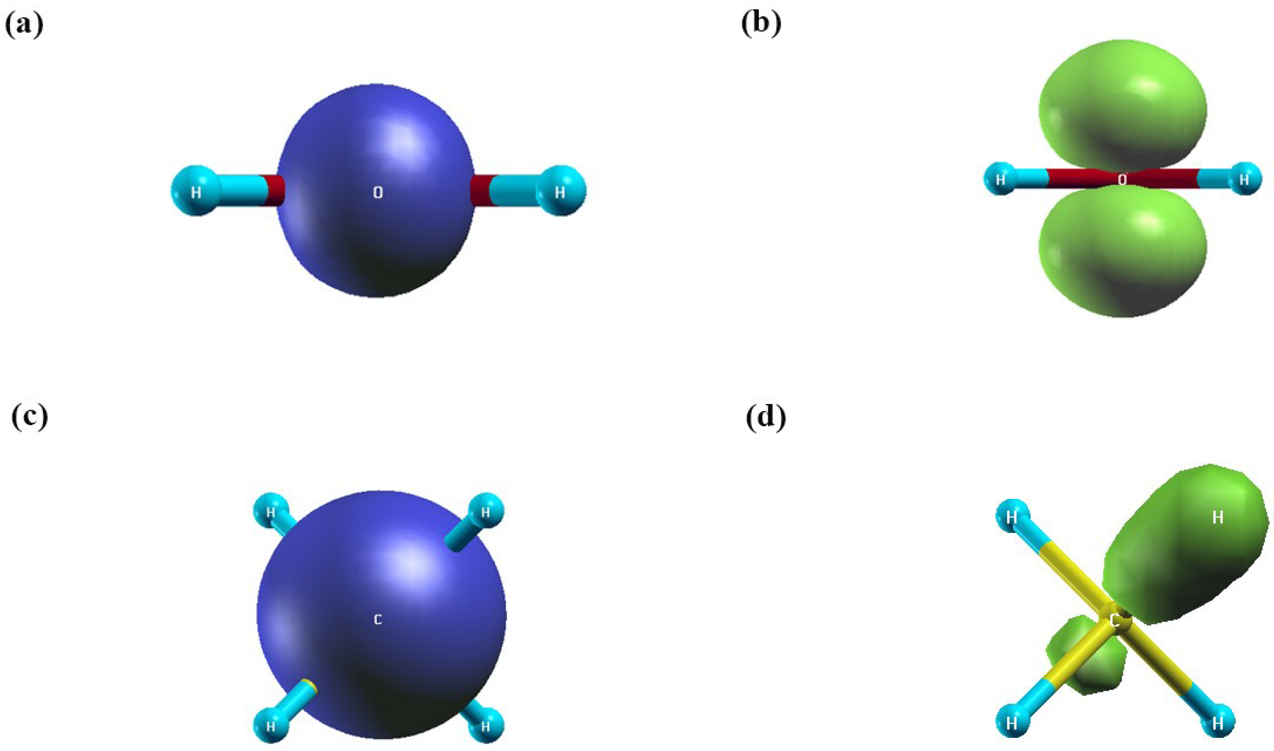 2). These are among the most prevalent substances in many aspects of our lives and are an important component in numerous biological and chemical processes occurring in surfaces, in the atmosphere, and in solution. We address only singlet excited states as these can be optically activated. We begin with the isolated water and methane molecules. We first optimize the geometry of these molecules. As a result, for H