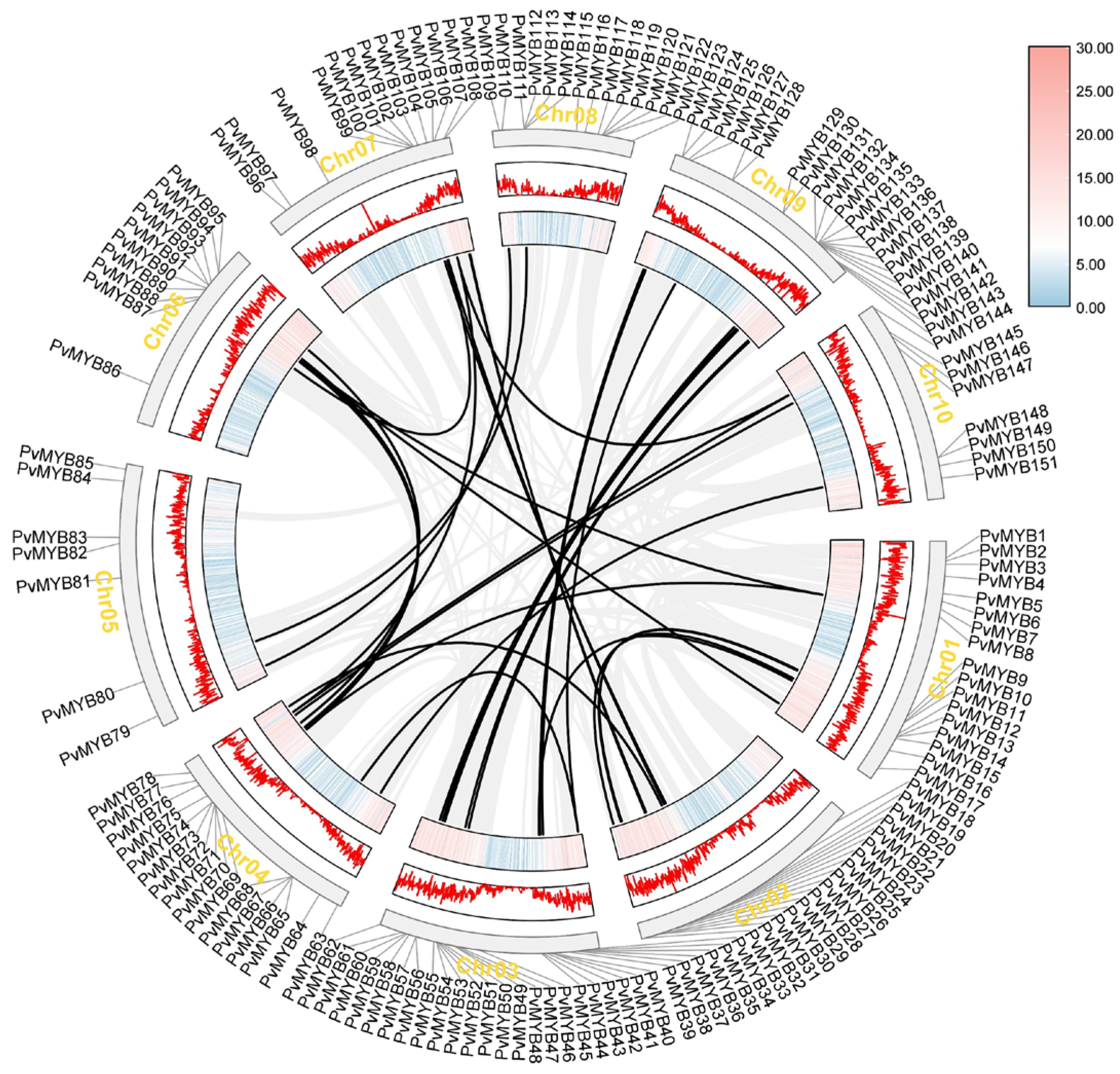 2.4. Collinearity and Evolution Analysis of PvMYBs