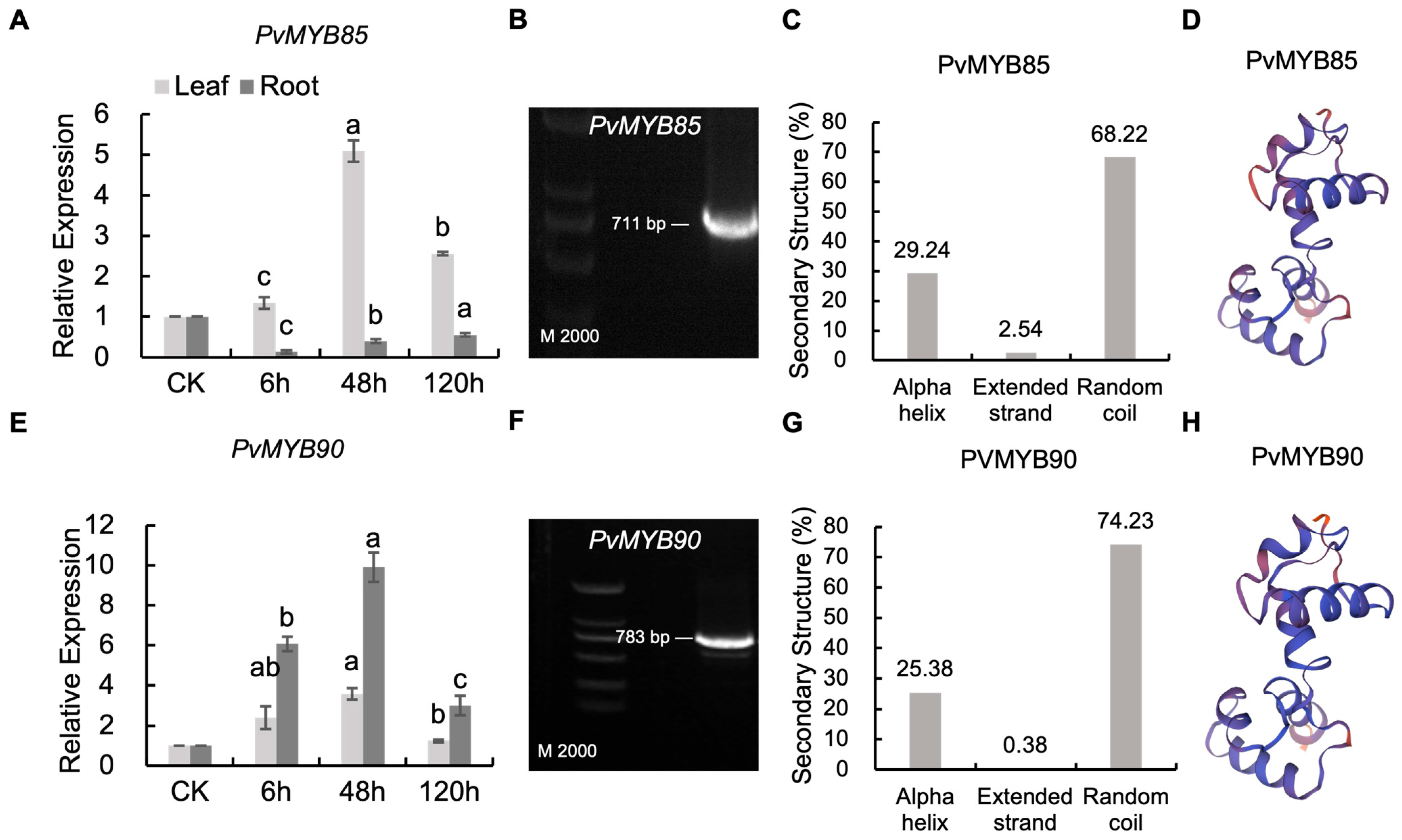 2.8. Subcellular Localization of PvMYB85 and PvMYB90 Proteins
