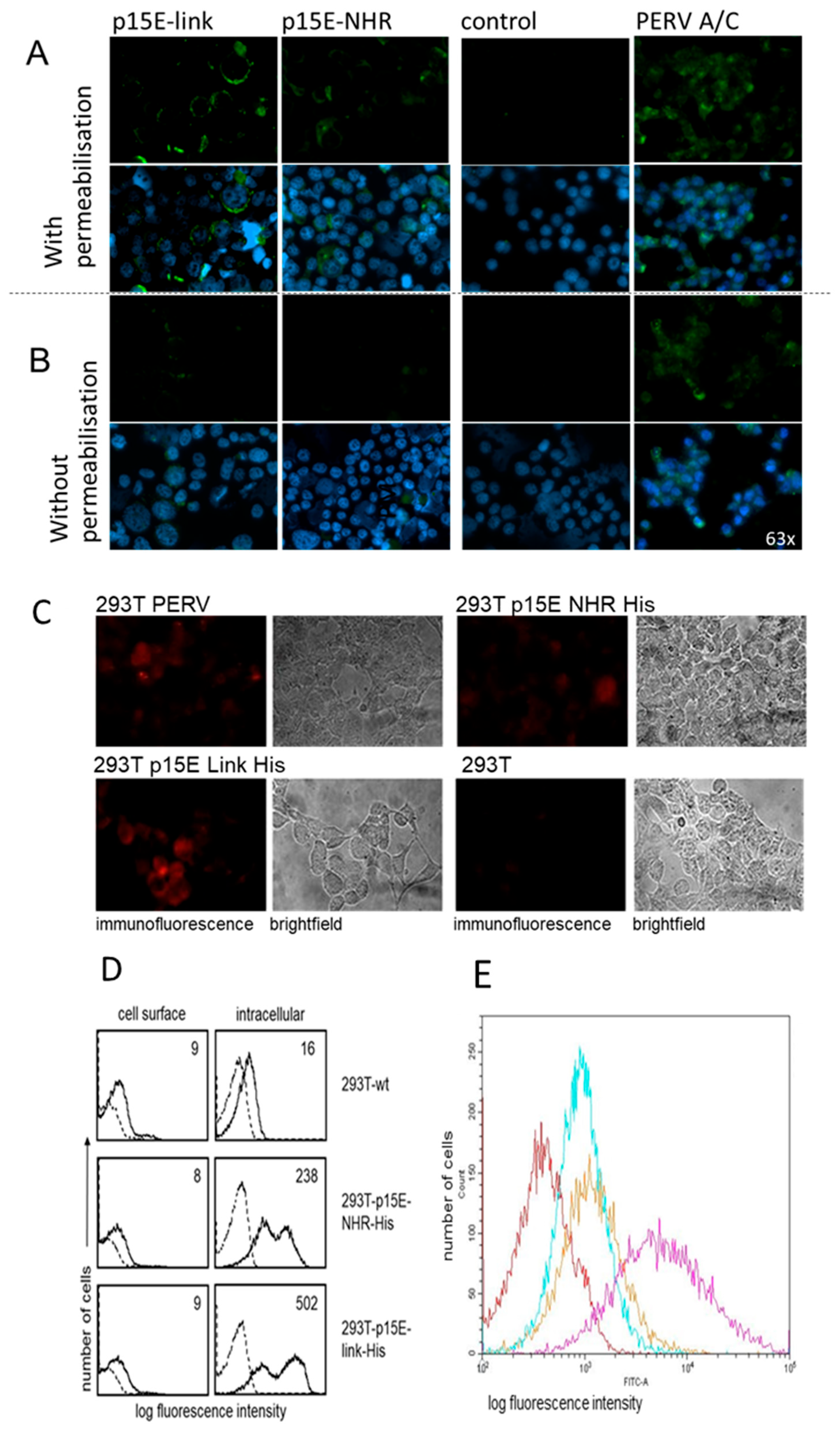2.3. Analysis of p15E of PERV Expression in Transfected and Virus-Producing Human Cells