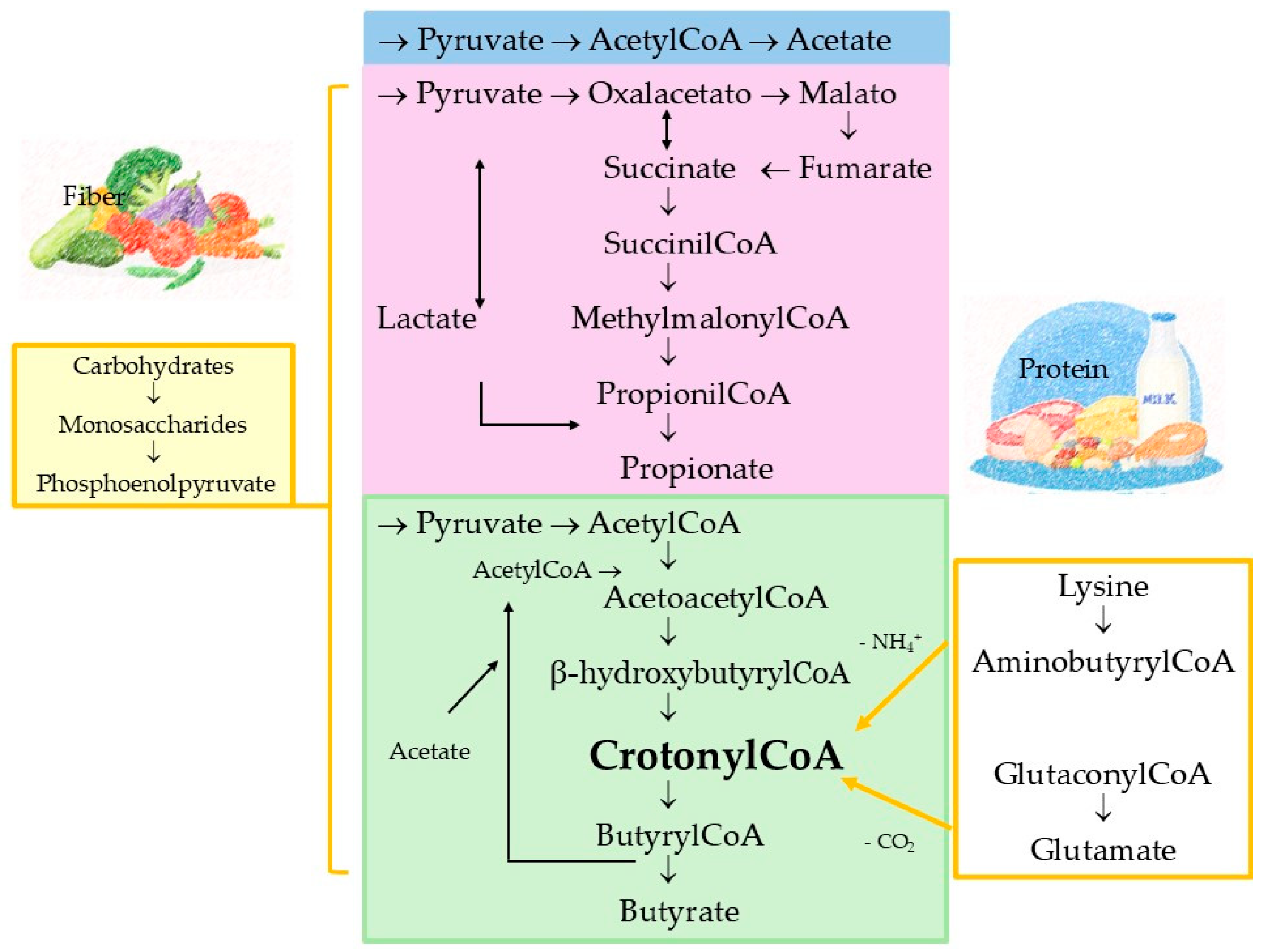 - Miller, T.L.; Wolin, M.J. Pathways of acetate, propionate, and butyrate formation by the human fecal microbial flora. Appl. Environ. Microbiol. 1996, 62, 1589–1592. [Google Scholar] [CrossRef]