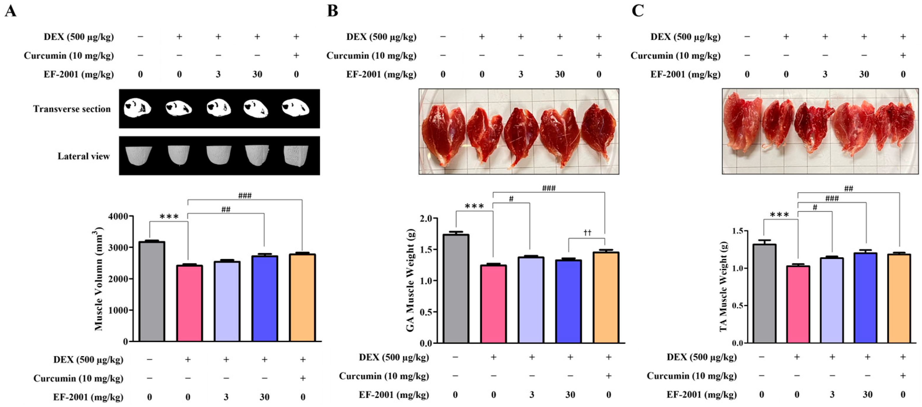 2.6. Effect of Heat-Killed Postbiotic EF-2001 on the Muscle Volume and Weight in Dexamethasone-Induced Muscle Atrophy in SD Rats