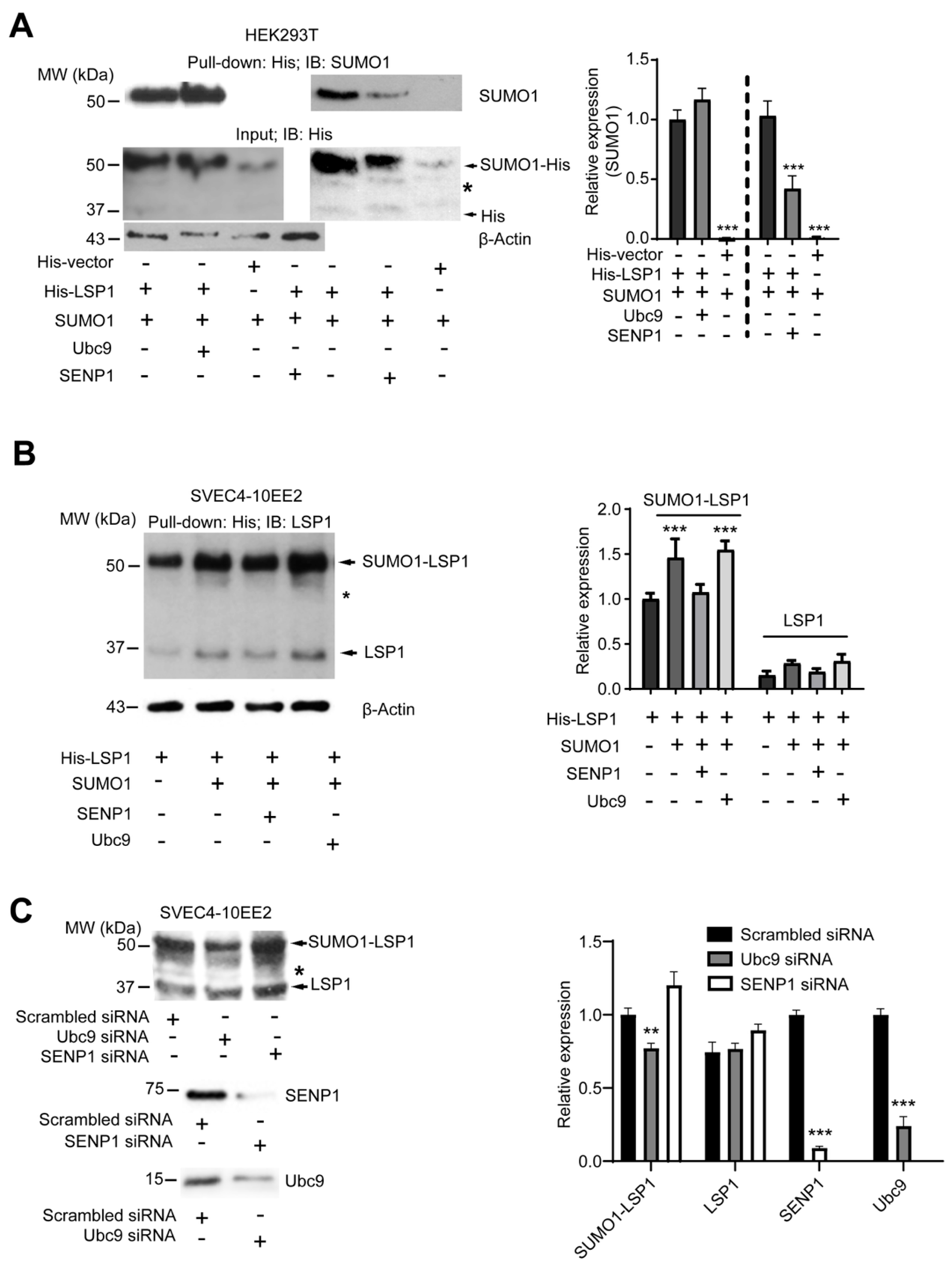 2.2. LSP1 SUMOylation Is Facilitated by Ubc9, Whereas Its deSUMOylation Is Mediated by SENP1