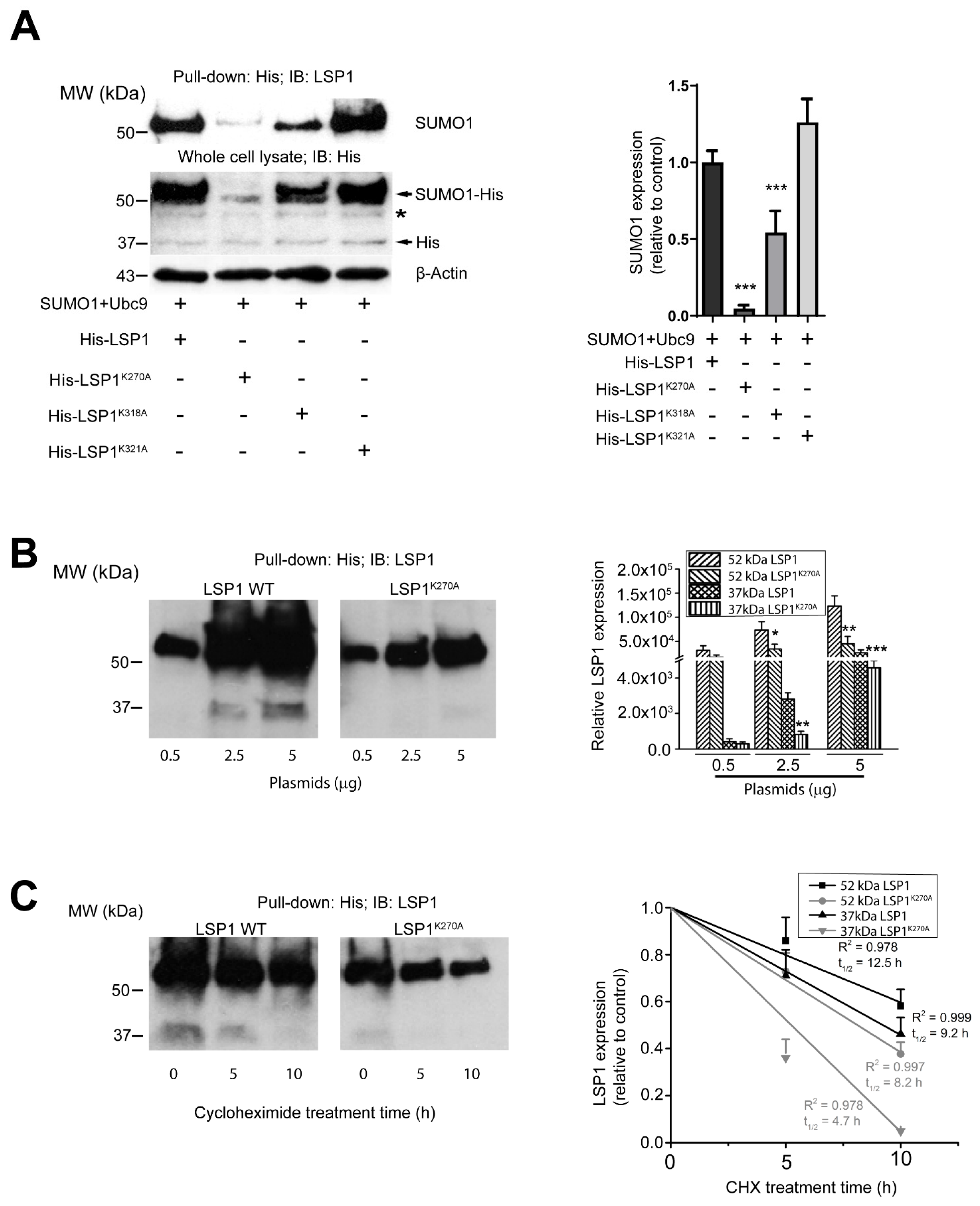 2.3. K270 and K318 Are the Primary Sites of LSP1 SUMOylation