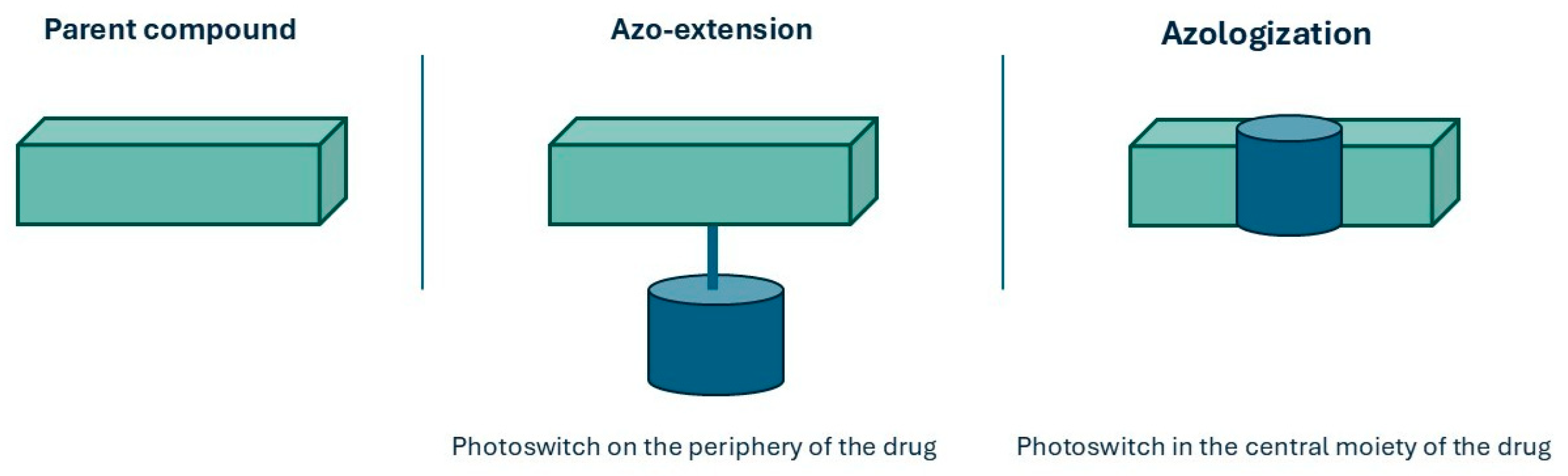 - Kobauri, P.; Dekker, F.J.; Szymanski, W.; Feringa, B.L. Rational Design in Photopharmacology with Molecular Photoswitches. Angew. Chem. Int. Ed. 2023, 62, e202300681. [Google Scholar] [CrossRef] [PubMed]