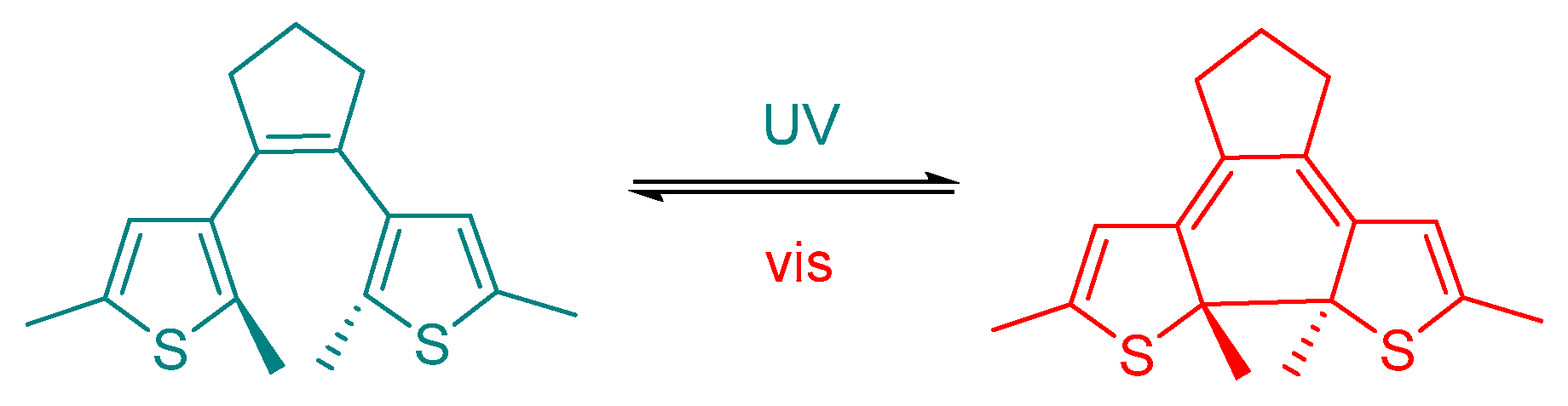 - Zhang, J.; Tian, H. The Endeavor of Diarylethenes: New Structures, High Performance, and Bright Future. Adv. Opt. Mater. 2018, 6, 1701278. [Google Scholar] [CrossRef]