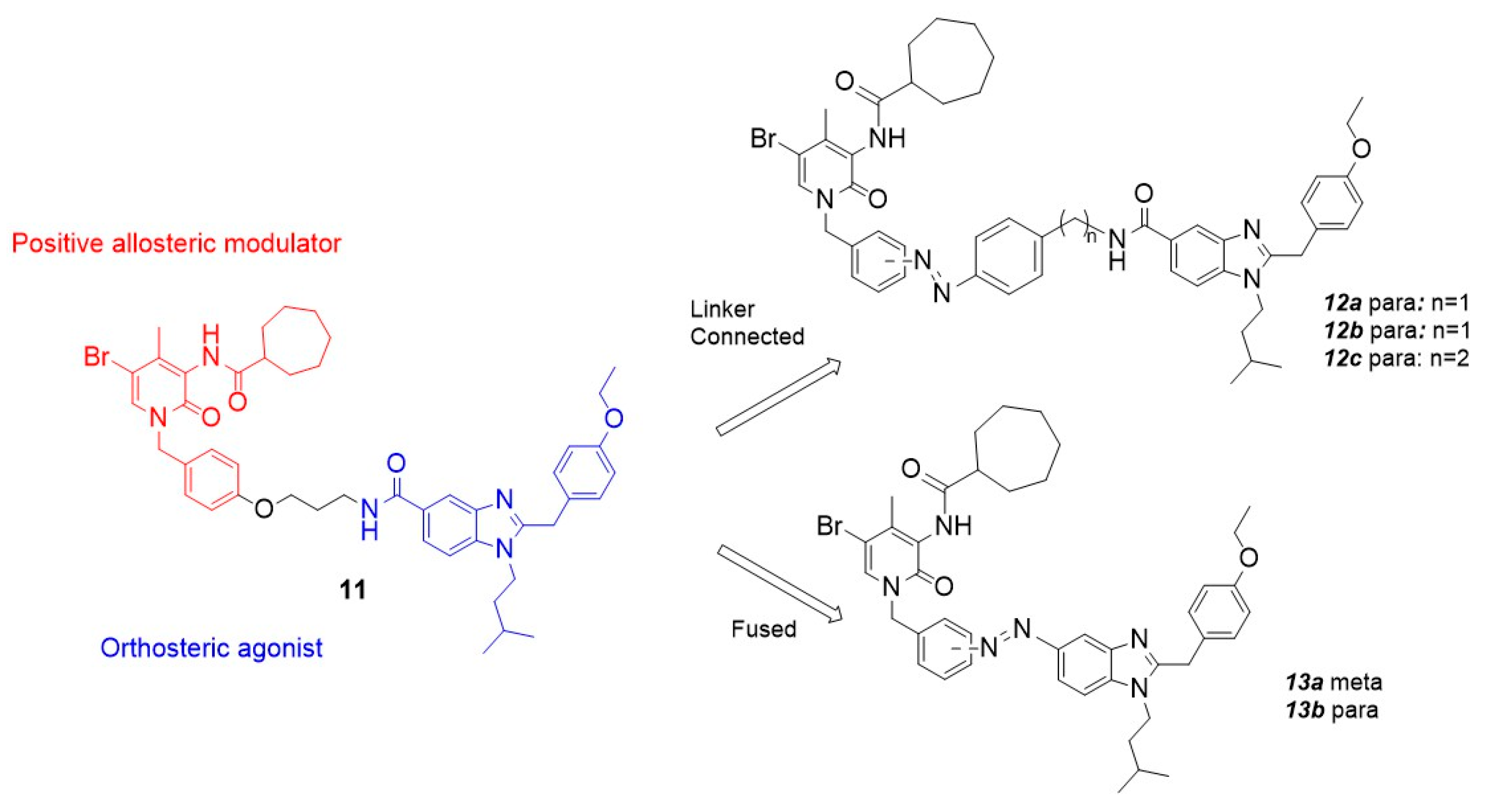 - Mori, S.; Arella, D.; Decker, M. Photoswitchable allosteric and dualsteric ligands in GPCR pharmacology. Trends Pharmacol. Sci. 2025; ahead of print. [Google Scholar]