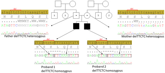 Rare variants were classified according to the guidelines established by the American College of Medical Genetics and Genomics and the Association for Molecular Pathology (ACMG/AMP) for the interpretation of sequence variants [19]. Confirmation of the identified variant within the family was performed using Sanger sequencing on an ABI PRISM 3130 Genetic Analyzer (Applied Biosystems, Thermo Fisher Scientific, Tokyo, Japan).