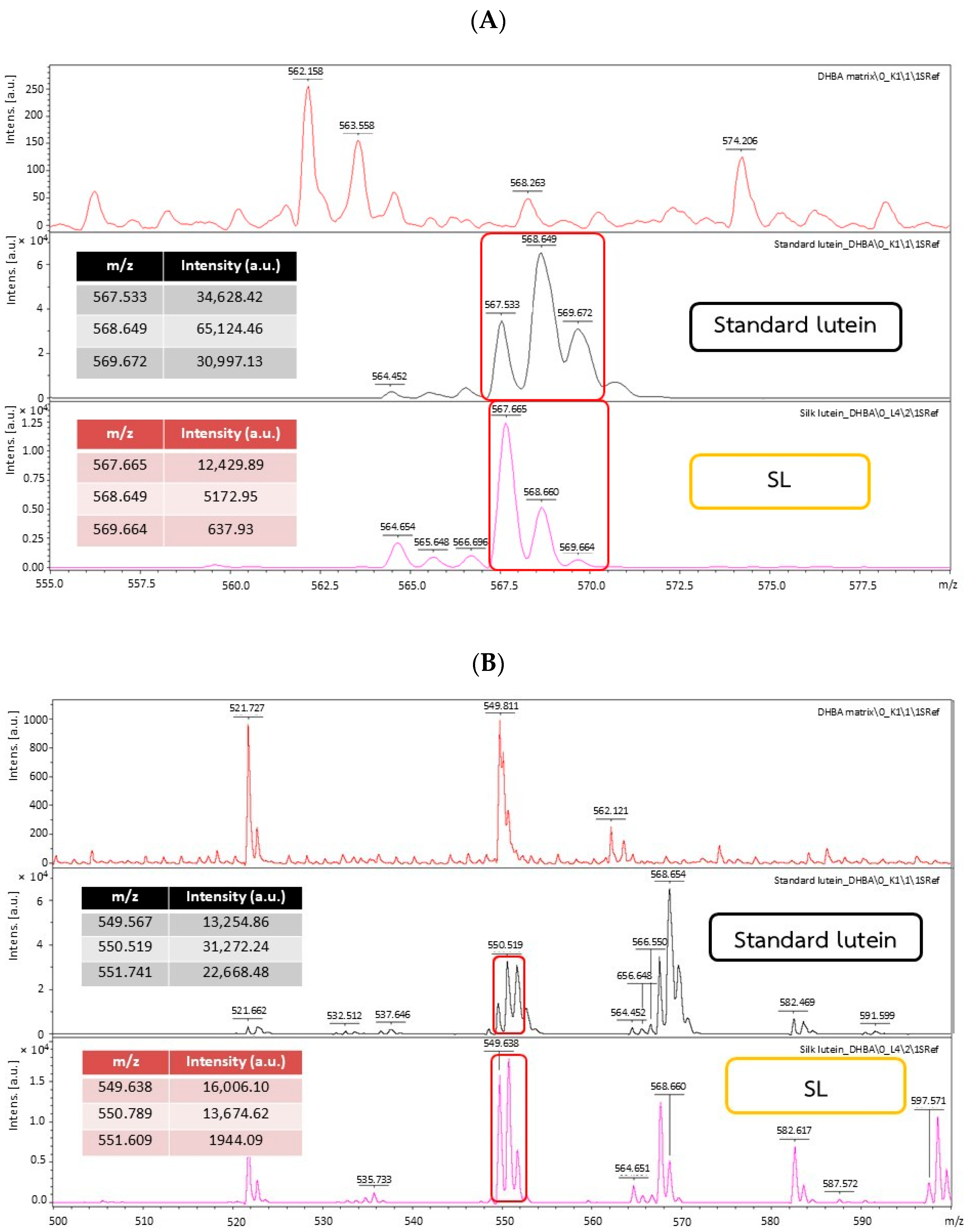 - Manupa, W.; Wongthanyakram, J.; Jeencham, R.; Sutheerawattananonda, M. Storage stability and antioxidant activities of lutein extracted from yellow silk cocoons (Bombyx mori) in Thailand. Heliyon 2023, 9, e16805. [Google Scholar] [CrossRef] [PubMed]