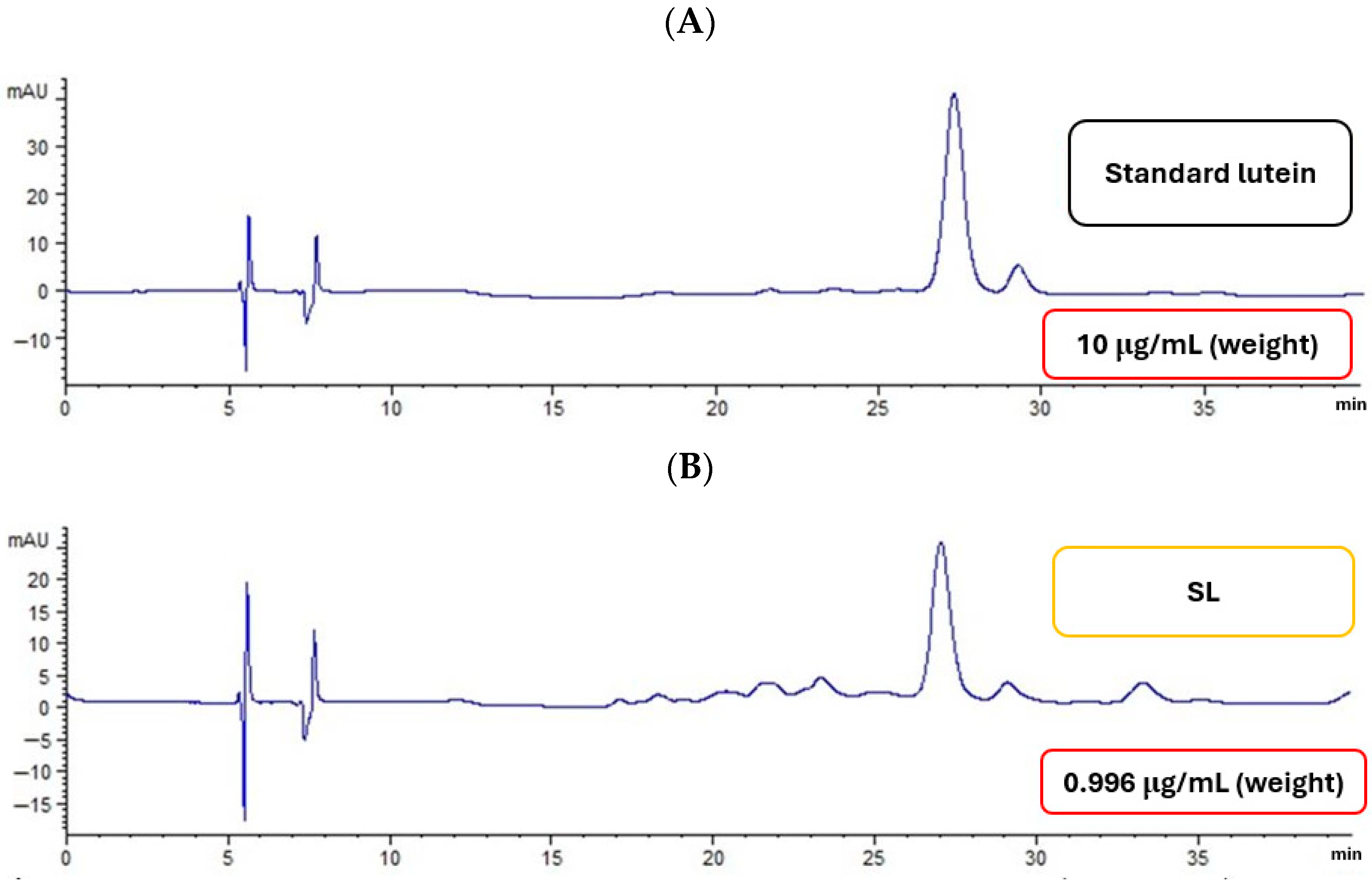3.3.1. Lutein Quantification by HPLC