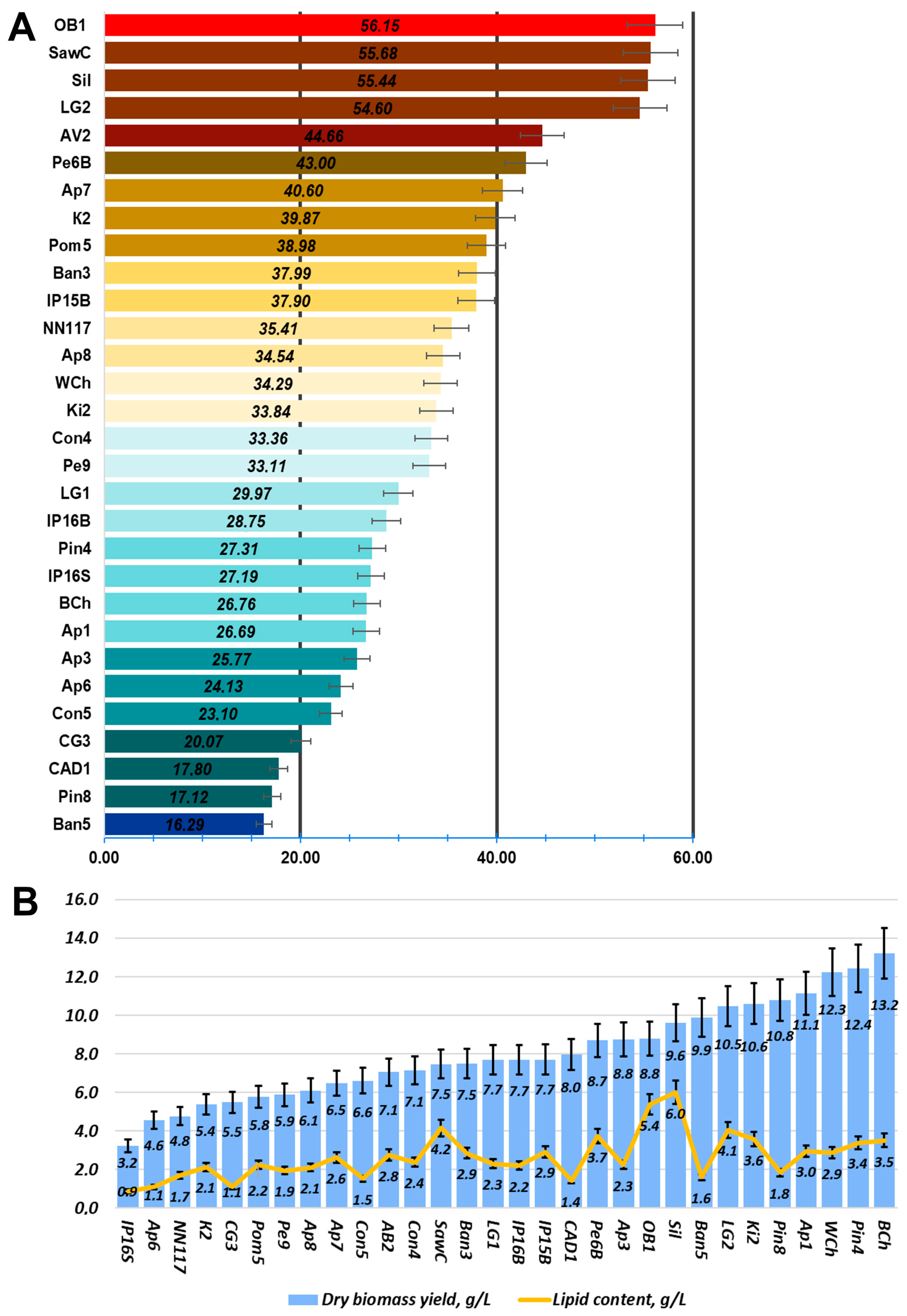 2.2. Physiological Characteristics for Oleogenic Strains
