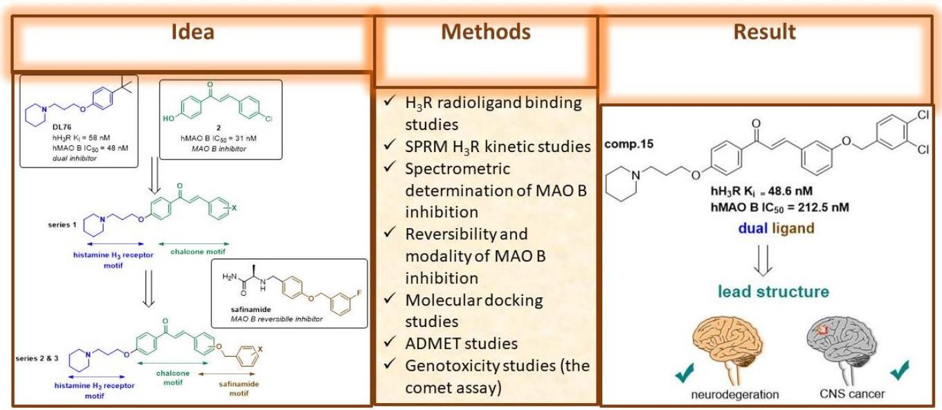 Łażewska, D.; Doroz-Płonka, A.; Kuder, K.; Siwek, A.; Wagner, W.; Karnafał-Ziembla, J.; Olejarz-Maciej, A.; Wolak, M.; Głuch-Lutwin, M.; Mordyl, B.; et al. Rational Design, Synthesis and Pharmacological Evaluation of Chalcones as Dual-Acting Compounds—Histamine H3 Receptor Ligands and MAO-B Inhibitors. Int. J. Mol. Sci. 2026, 27, 581. https://doi.org/10.3390/ijms27020581