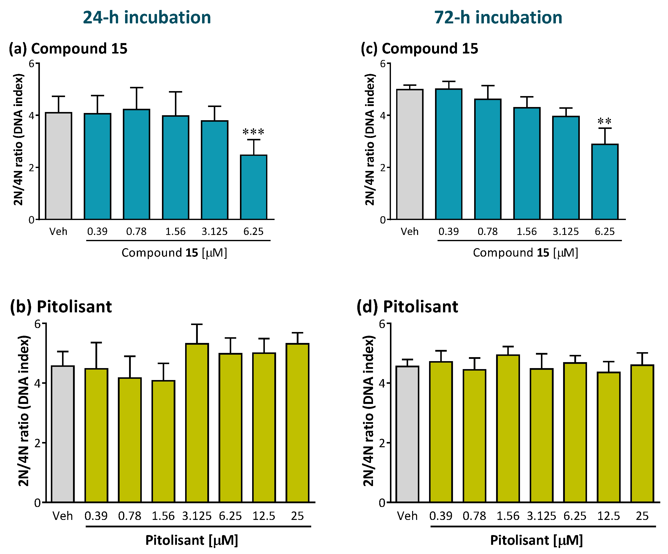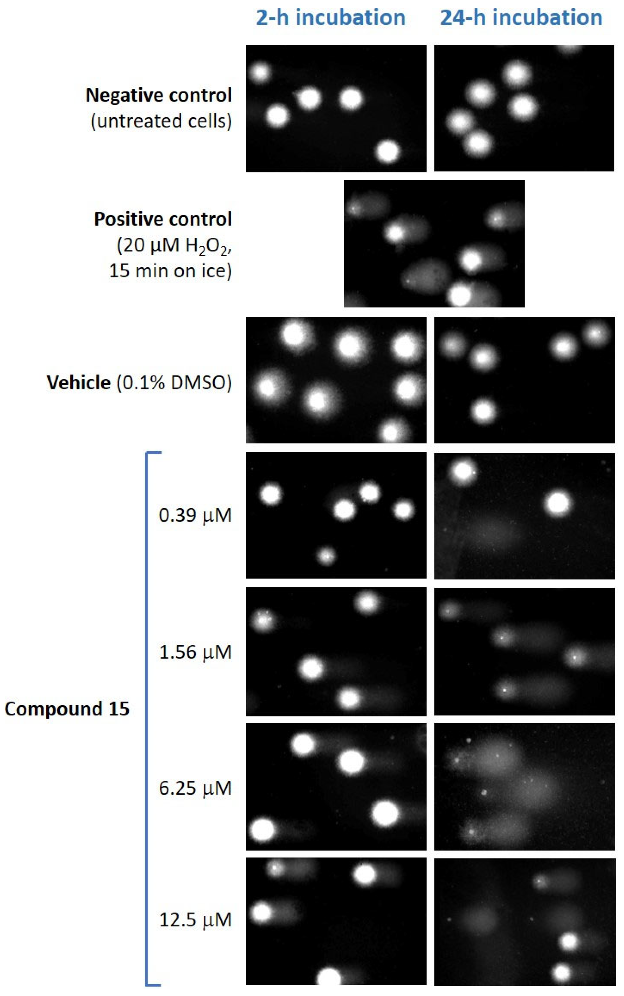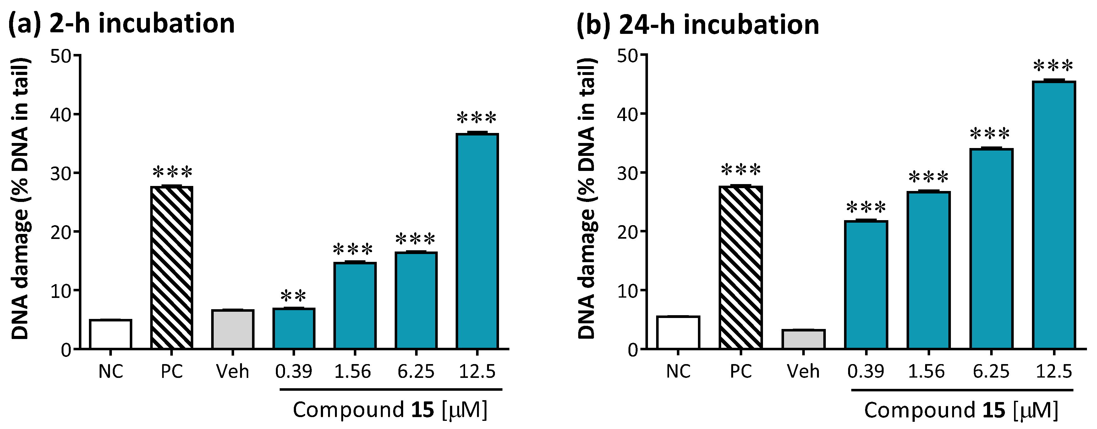 2.6.3. The Genotoxic Potential of Compound 15—Results from the Comet Assay