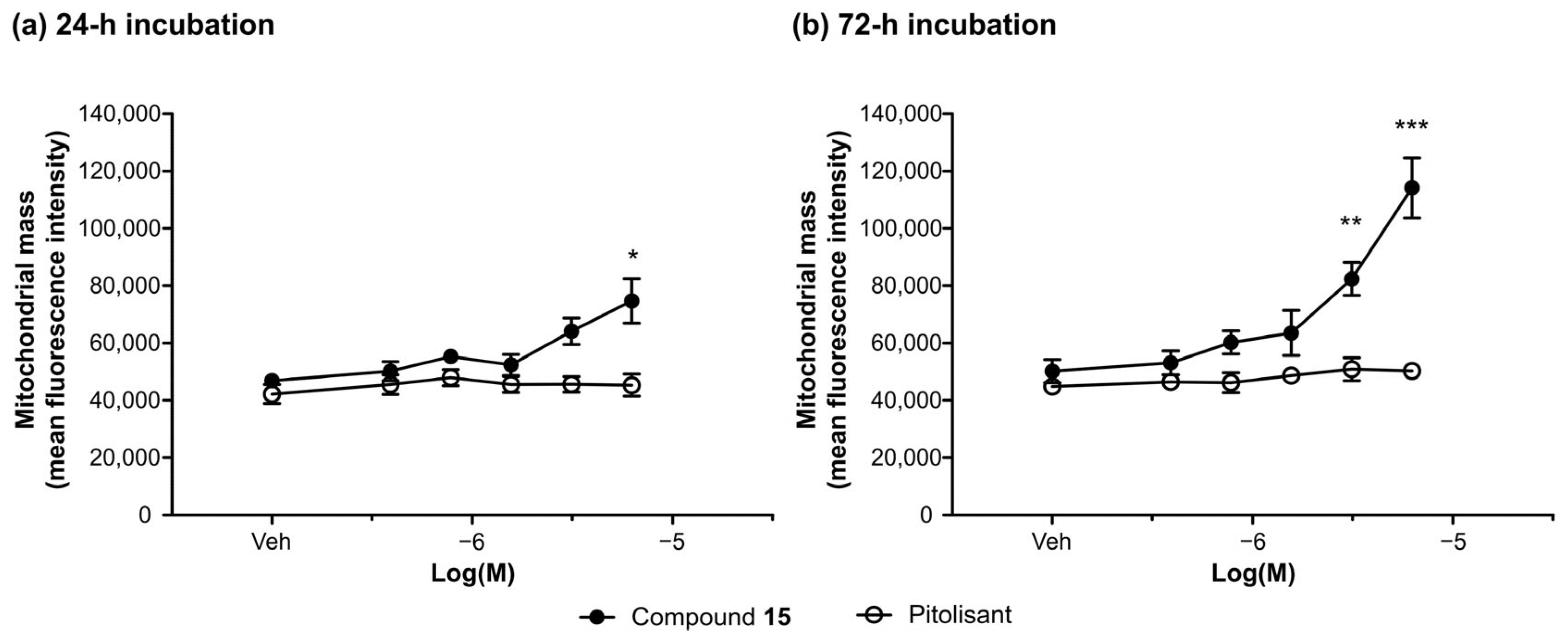 Assessment of the Effect of Compound 15 on SH-SY5Y Cell Proliferation, Mitochondrial Membrane Potential, and Mitochondrial Mass (High Content Analysis Image Cytometry)