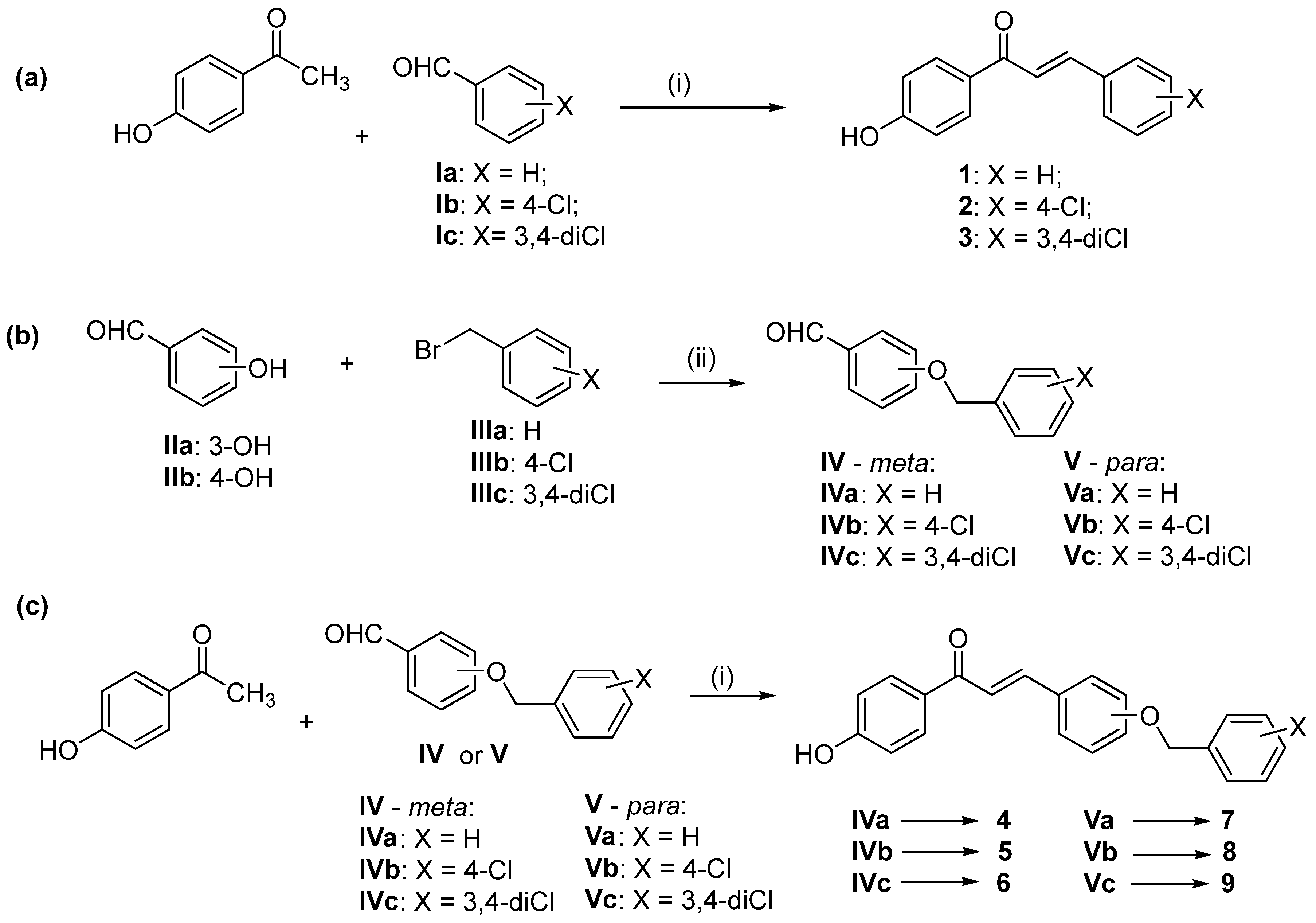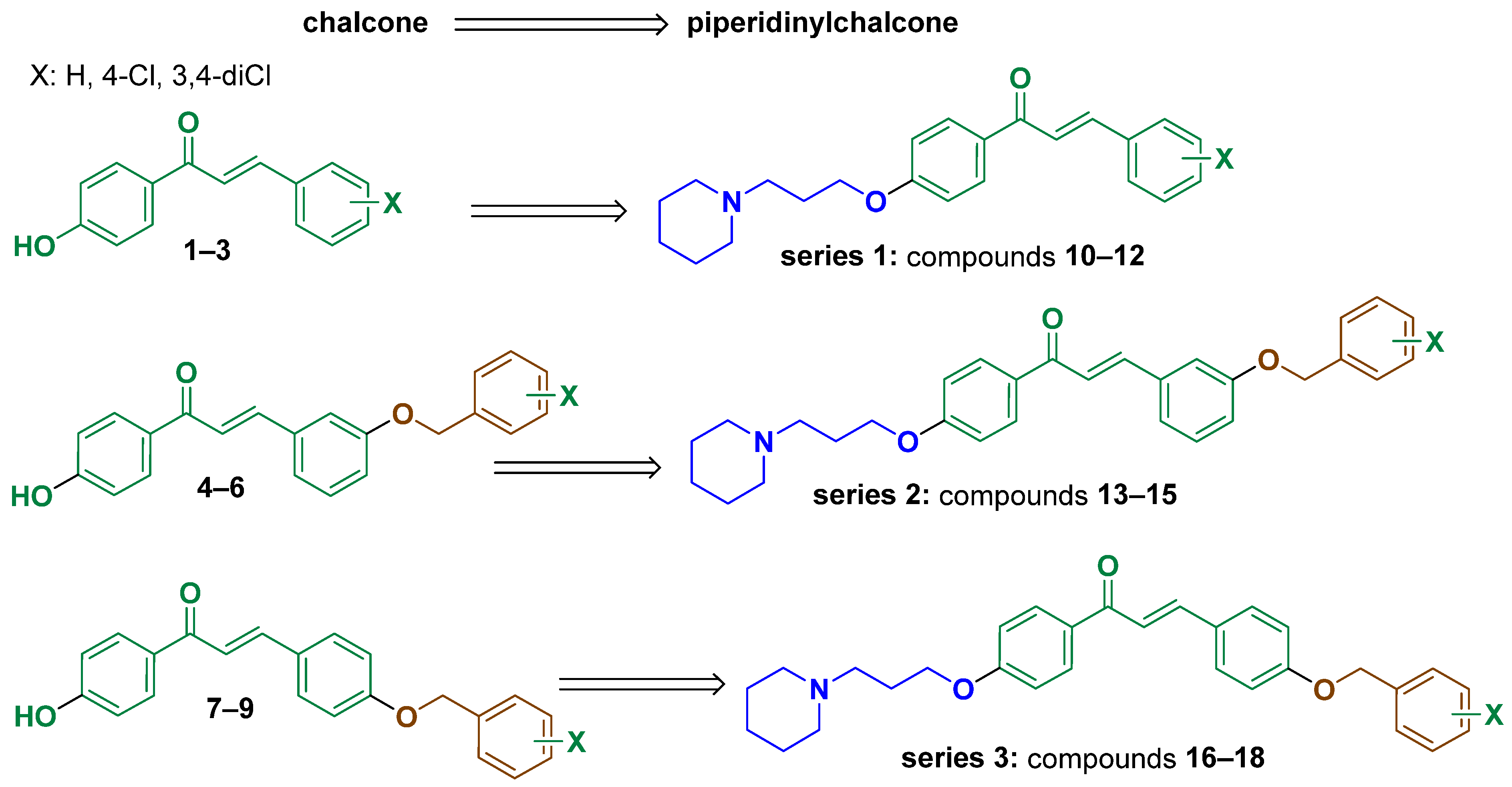 - Chimenti, F.; Fioravanti, R.; Bolasco, A.; Chimenti, P.; Secci, D.; Rossi, F.; Yáñez, M.; Orallo, F.; Ortuso, F.; Alcaro, S. Chalcones: A valid scaffold for monoamine oxidases inhibitors. J. Med. Chem. 2009, 52, 2818–2824. [Google Scholar] [CrossRef]