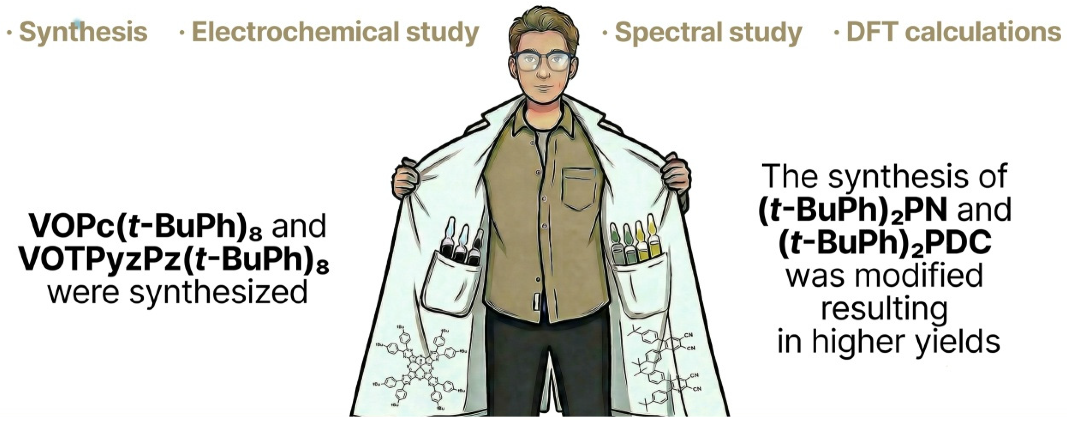 Finogenov, D.N.; Pogonin, A.E.; Zhabanov, Y.A.; Ksenofontova, K.V.; Parfyonova, D.Y.; Eroshin, A.V.; Stuzhin, P.A. Influence of Aza-Substitution on Molecular Structure, Spectral and Electronic Properties of t-Butylphenyl Substituted Vanadyl Complexes. Int. J. Mol. Sci. 2026, 27, 606. https://doi.org/10.3390/ijms27020606