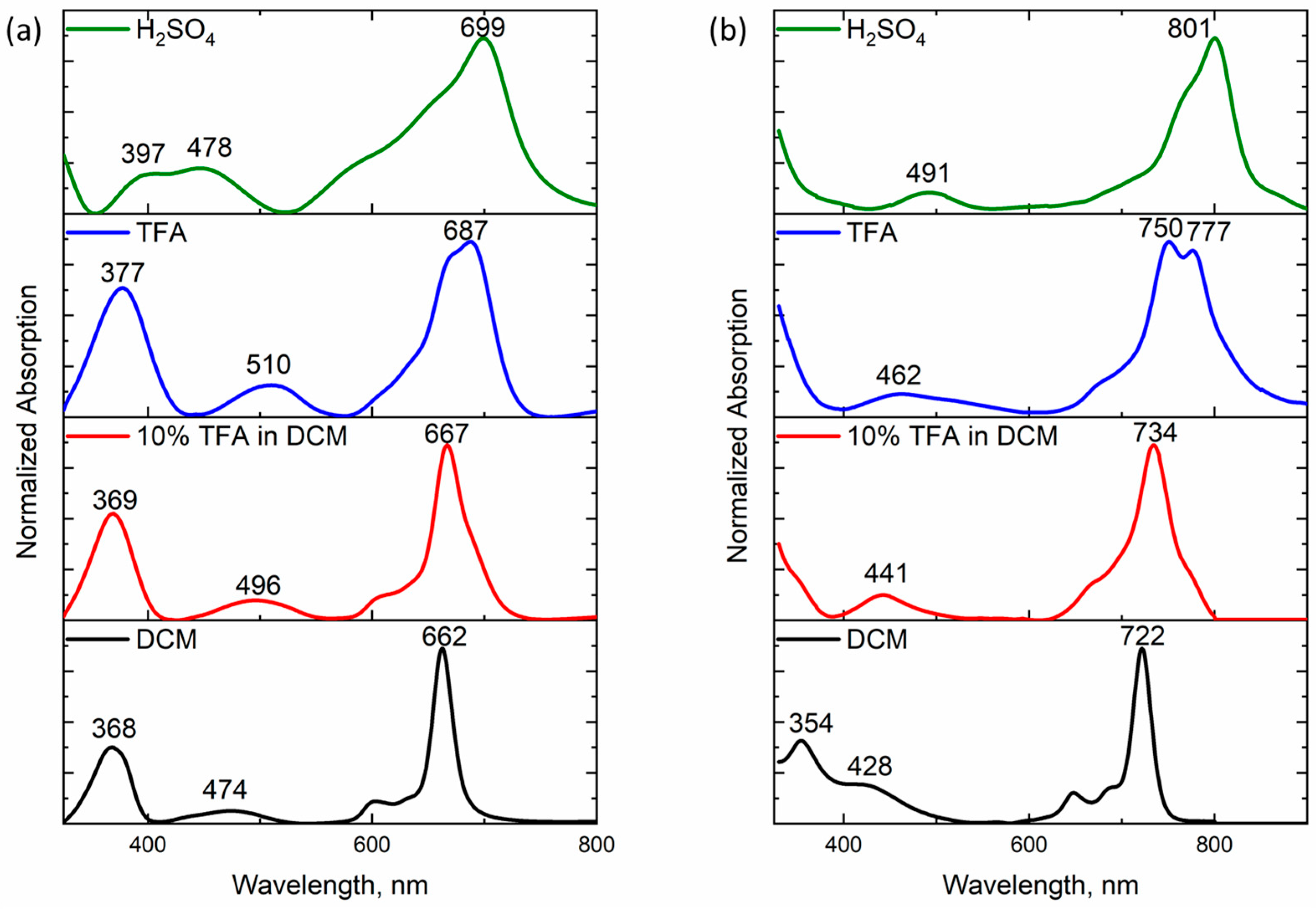 | Compound | λabs (Q0–Qn), nm (cm−1) | ||||