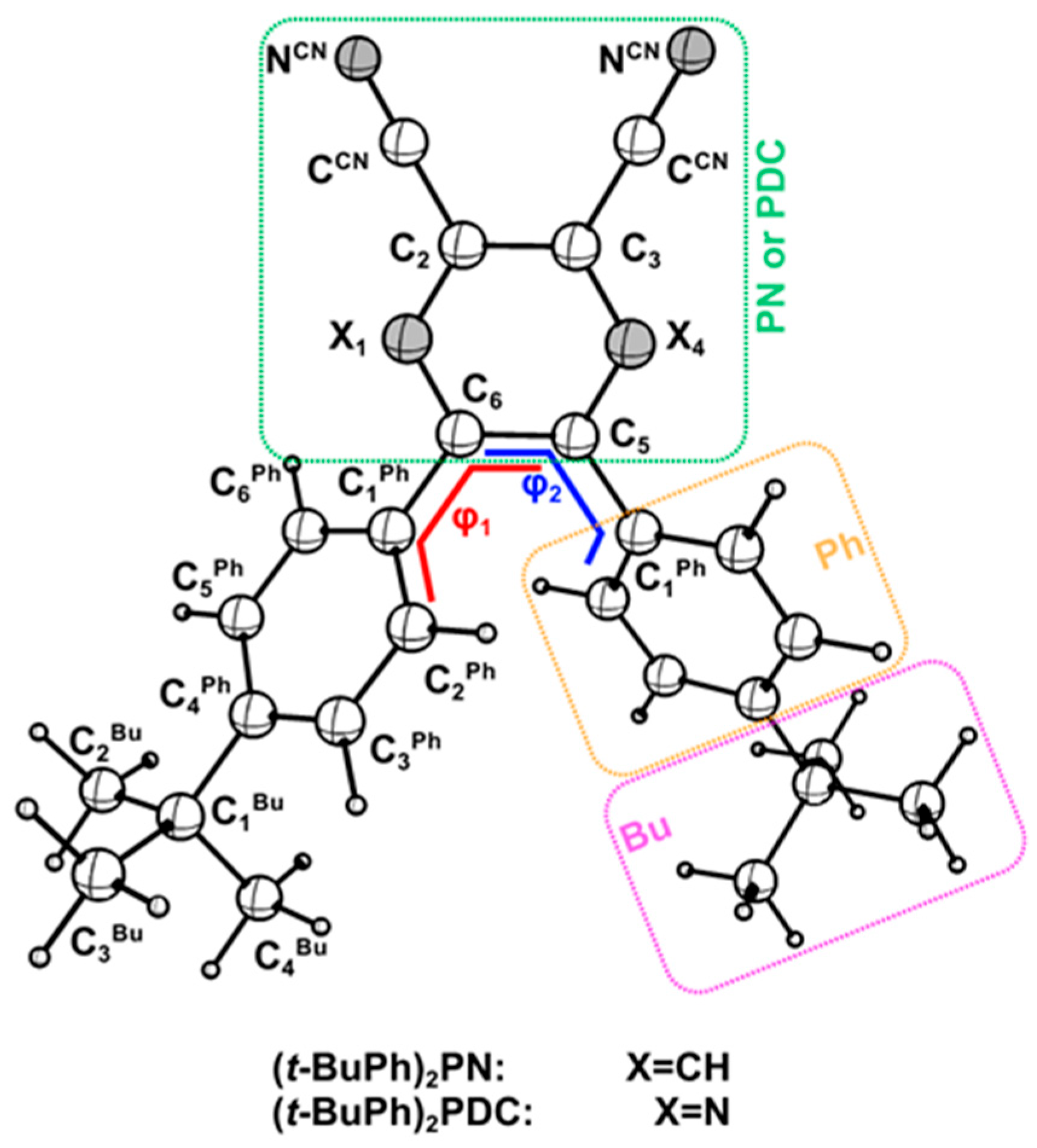 | Parameters a | PN | Ph2PN | (t-BuPh)2PN | PDC | Ph2PDC | (t-BuPh)2PDC |