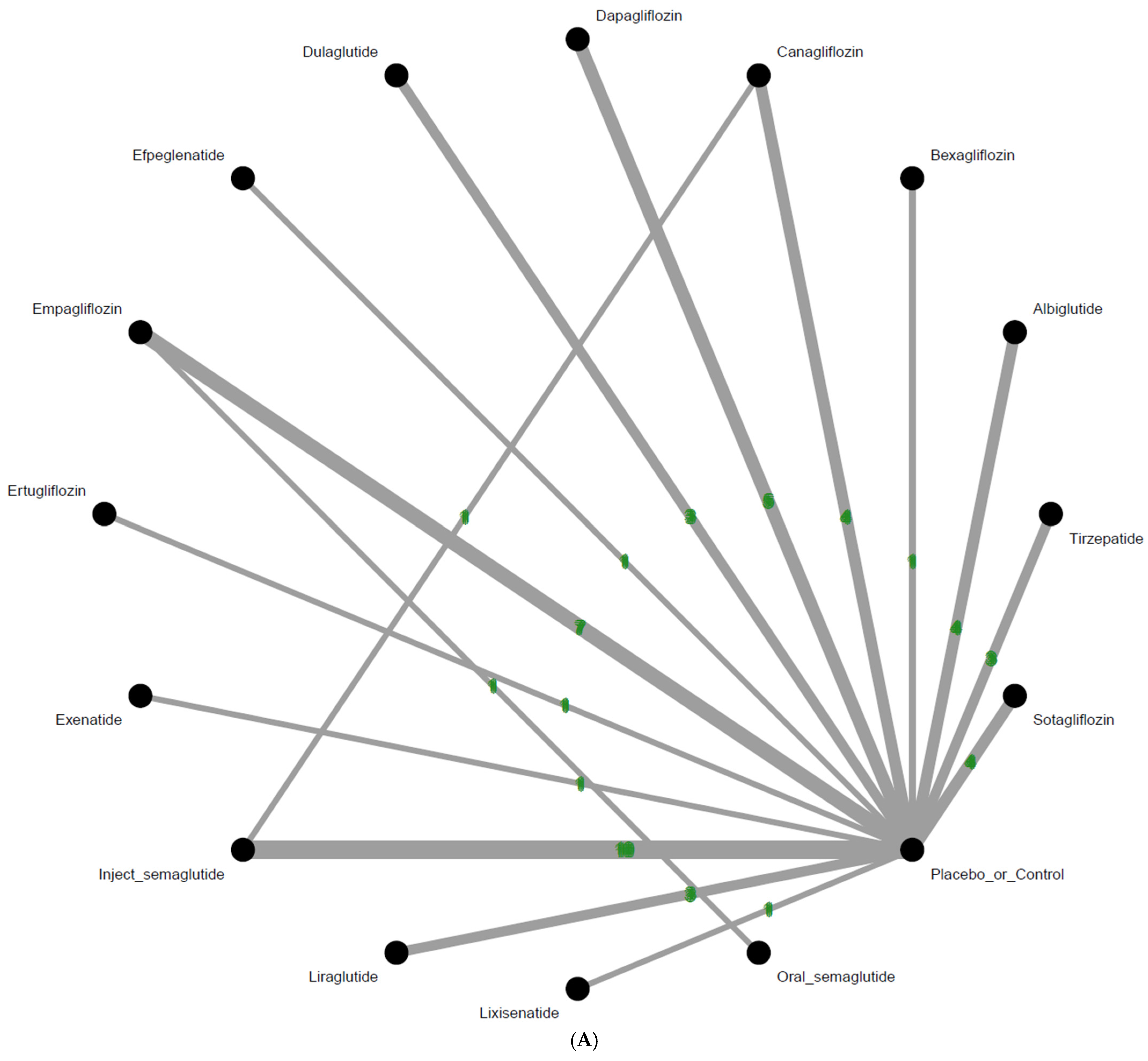 - Tseng, P.T.; Zeng, B.Y.; Hsu, C.W.; Hung, C.M.; Carvalho, A.F.; Stubbs, B.; Chen, Y.W.; Chen, T.Y.; Lei, W.T.; Chen, J.J.; et al. The pharmacodynamics-based prophylactic benefits of GLP-1 receptor agonists and SGLT2 inhibitors on neurodegenerative diseases: Evidence from a network meta-analysis. BMC Med. 2025, 23, 197. [Google Scholar] [CrossRef]